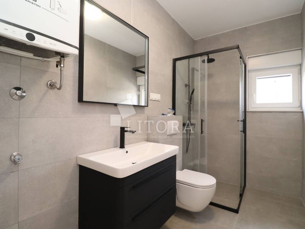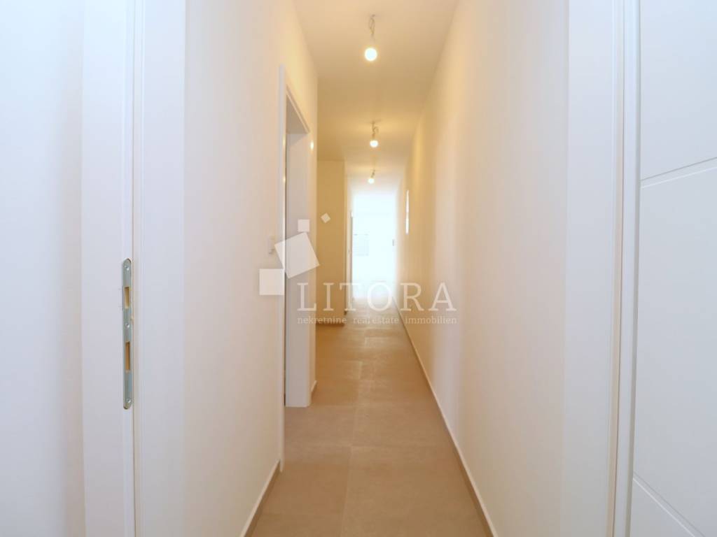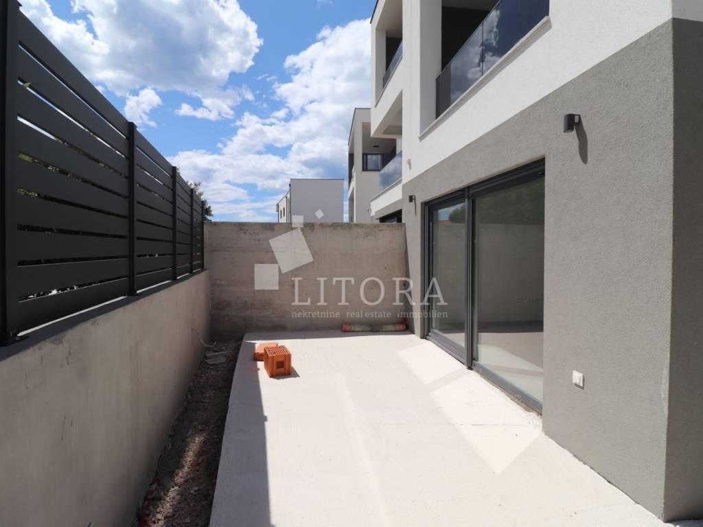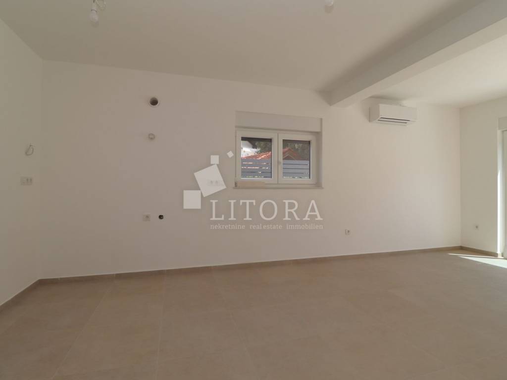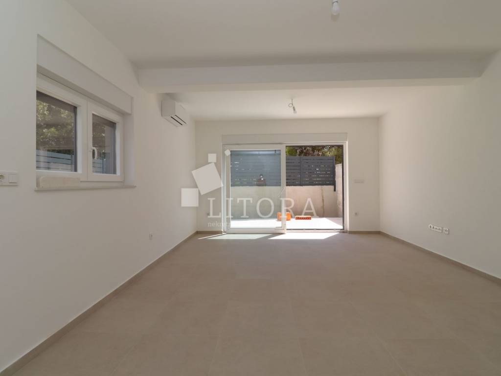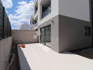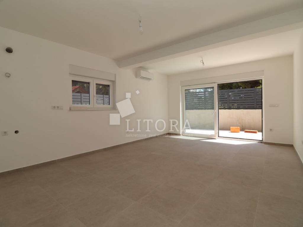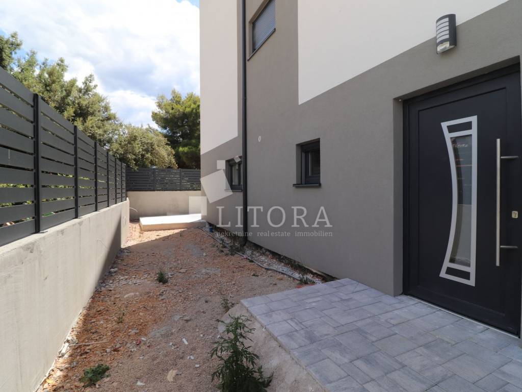 Žaborić – New, move-in ready apartment with garden, just 150 m from the beach! In an exceptionally attractive location in Žaborić, only 150 meters from the beach and the town center, this modern two-bedroom apartment is situated on the ground floor of a high-quality new building.