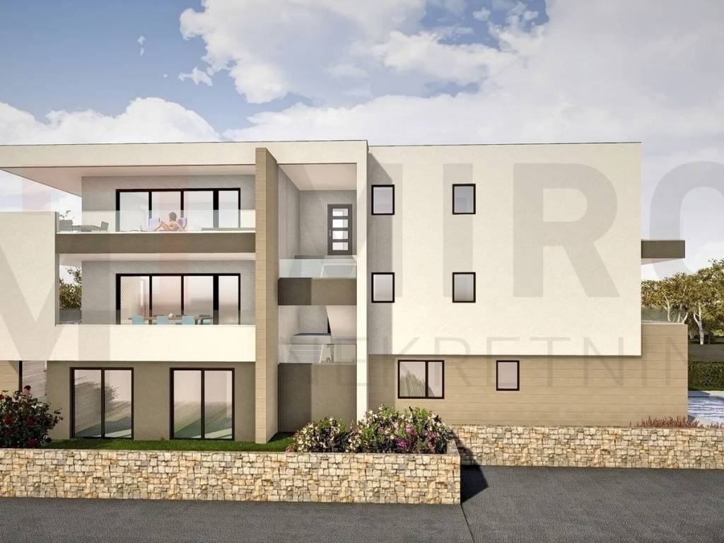 Island of Krk, Njivice, new apartment on the 1st floor, first row to the sea! Beautiful apartment of 140.55 m2, consists of an entrance hall, three bedrooms with private bathrooms, and a spacious open-space living room with kitchen and dining room, which opens onto a covered terrace of 20 m2. The apartment will be equipped with underfloor heating, air conditioning, PVC joinery with roller shutters and mosquito nets. The construction and furnishing of the property used top-quality materials that the investor, thanks to his many years of experience, regularly uses in construction. The apartment has two parking spaces in the building's yard. High-quality construction of PVC joinery, air conditioning in all rooms, alarm system. The estimated construction deadline is 15.6.2025. Exclusive location only 50 m from the beach. The apartment is owned by a natural person and upon transfer of ownership, a real estate transfer tax of 3% is charged. The owner guarantees proper documentation. Visit us and find the square footage of your home!