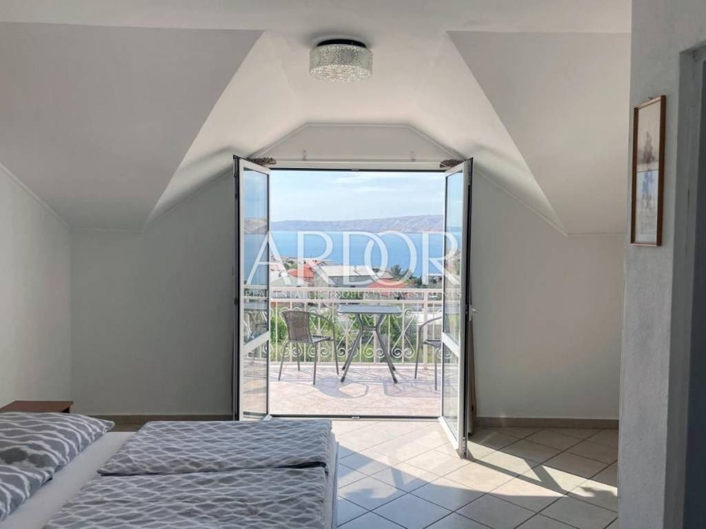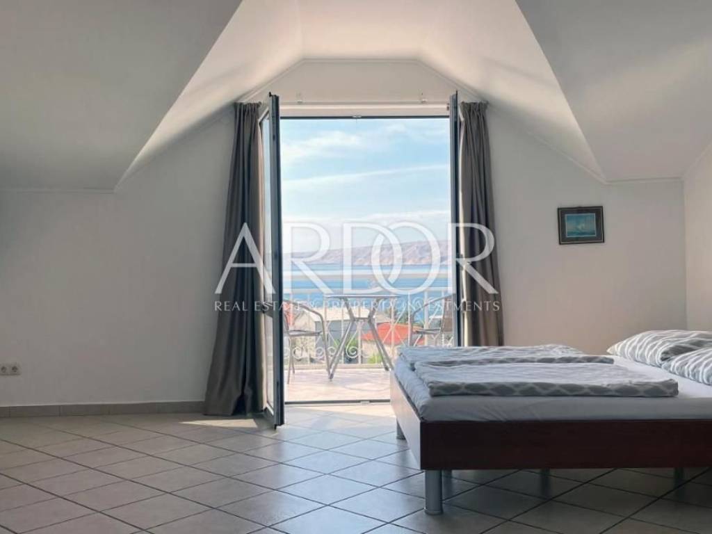 House with 6 apartments for sale in Karlobag, 150 meters from the sea and 450 meters from the center. On the ground floor there are two apartments of 50m2, each with its own terrace of 11m2. On the first floor is a 100m2 apartment with a large 22m2 terrace. On the second floor there are three apartments, one of 40m2 and two studio apartments. The house has a beautiful view of the sea, and a beautifully landscaped garden with 6 parking spaces.