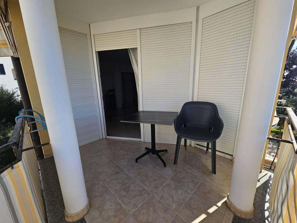 The apartment has the following layout: hallway, bathroom, bedroom with balcony, kitchen, dining room and living room with access to the balcony and sea view.