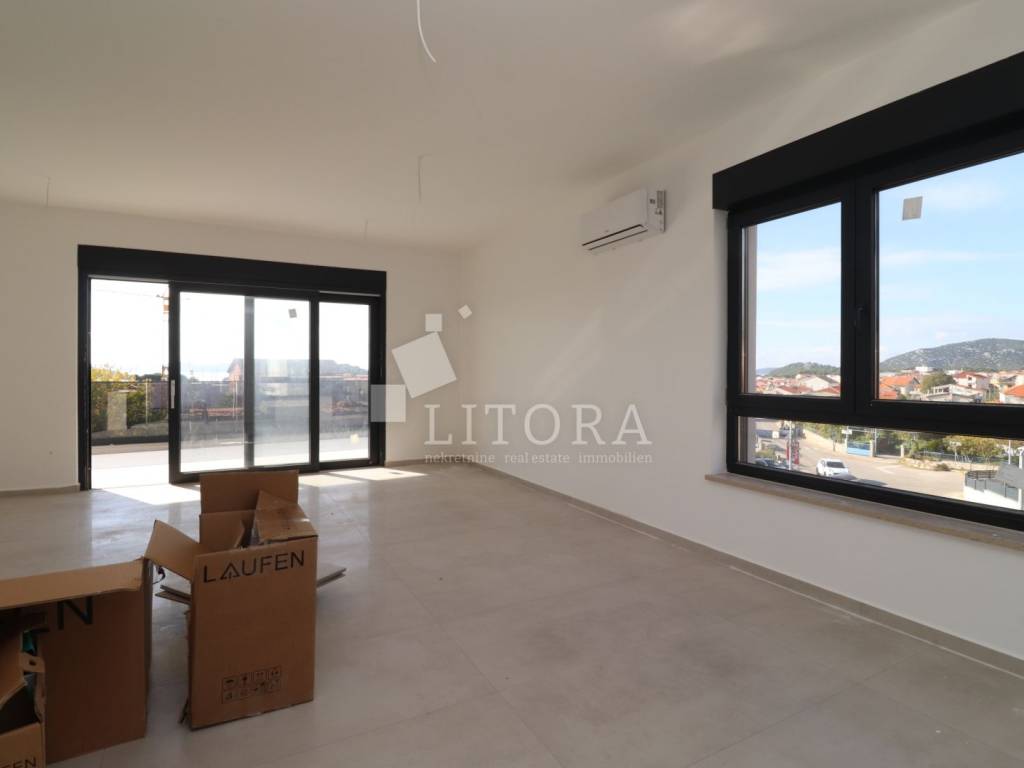 In Tribunj, just a short distance from the beach and the town center, this modernly designed apartment is located on the 2nd floor of a residential building. The apartment offers 103m² of usable space, a covered terrace of 30,52m², making it ideal for enjoying both comfort and privacy.