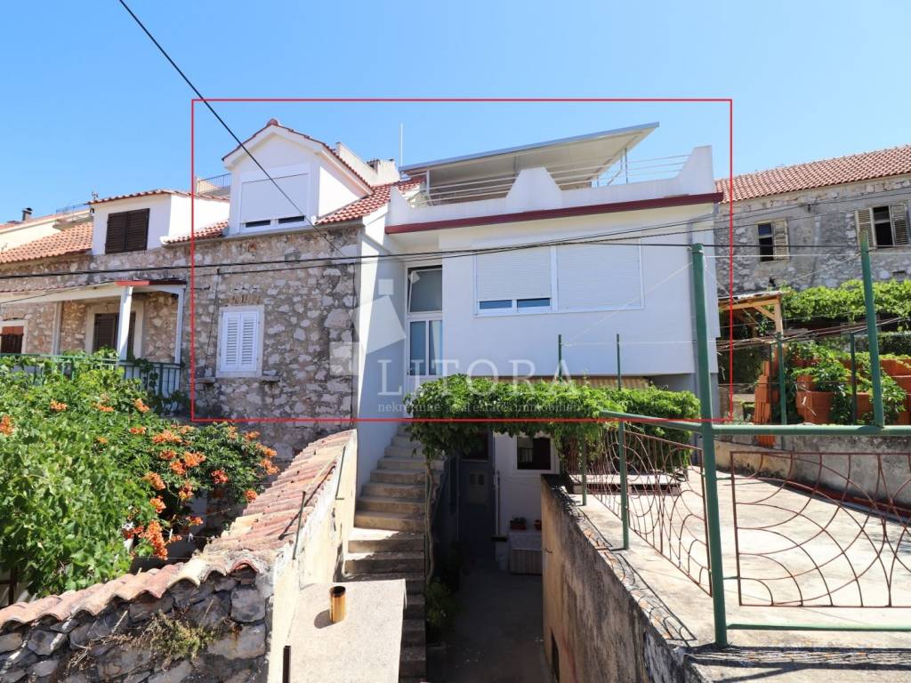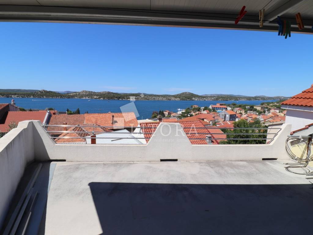 Šibenik, duplex apartment with sea view, total usable area of 117.46 m². It is effectively divided into two separate units: a move-in ready two-bedroom apartment with a usable area of 84.29 m² and a terrace of 22.99 m² offering a beautiful sea view, and a one-bedroom apartment of 30.83 m² in shell construction (roh bau), not yet habitable. The property is located in a pedestrian zone and is not accessible by car. Public parking is available approximately 200 meters away. Due to its location, the property is ideal for tourist rental. Distance to the sea is 230 meters, to Banj beach 550 meters, and to the city center 750 meters.