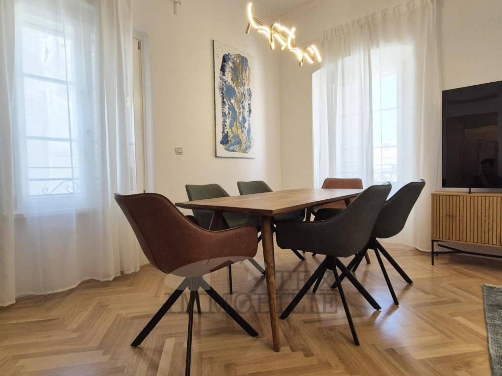 In the very heart of Poreč’s old town, on the second floor of a carefully renovated historic building, two elegant apartments are for sale, with a total area of approximately 136 m². Both apartments are characterized by a high standard of construction, a thoughtfully designed layout, and a perfect blend of authentic Mediterranean charm and modern comfort.