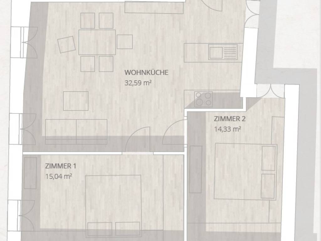 Apartment 1 – Spacious apartment with two bedrooms and open-plan living area (approx. 72 m²)