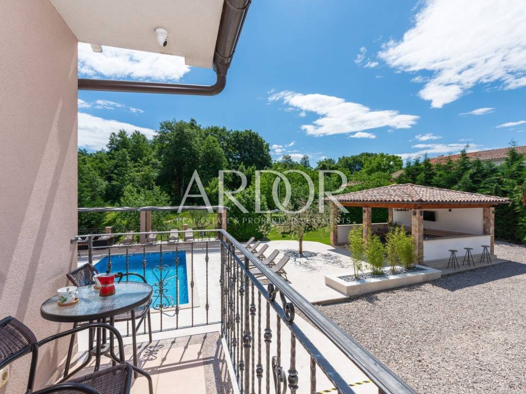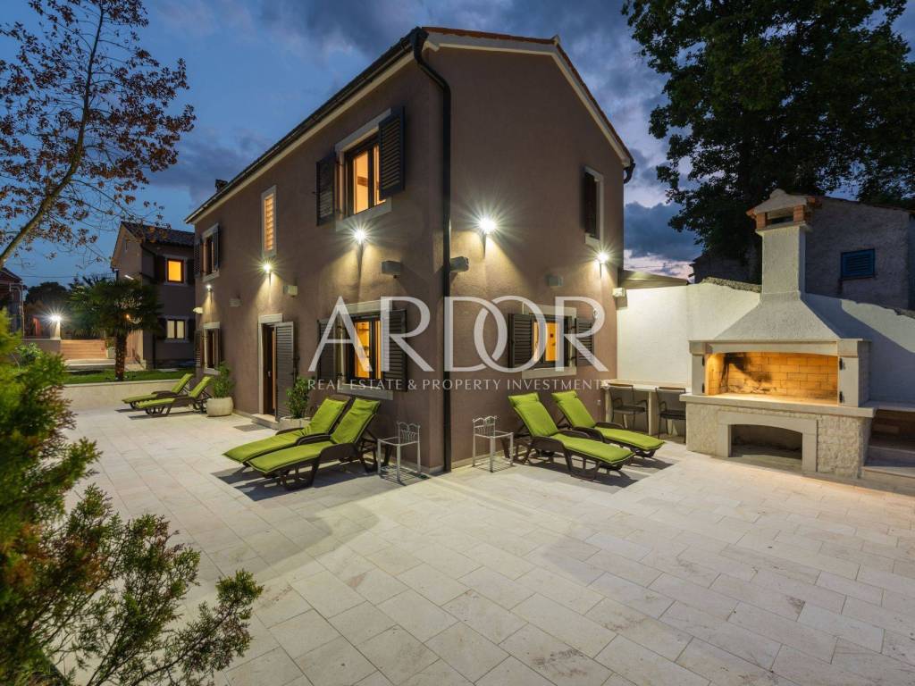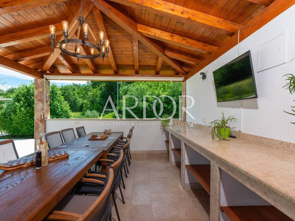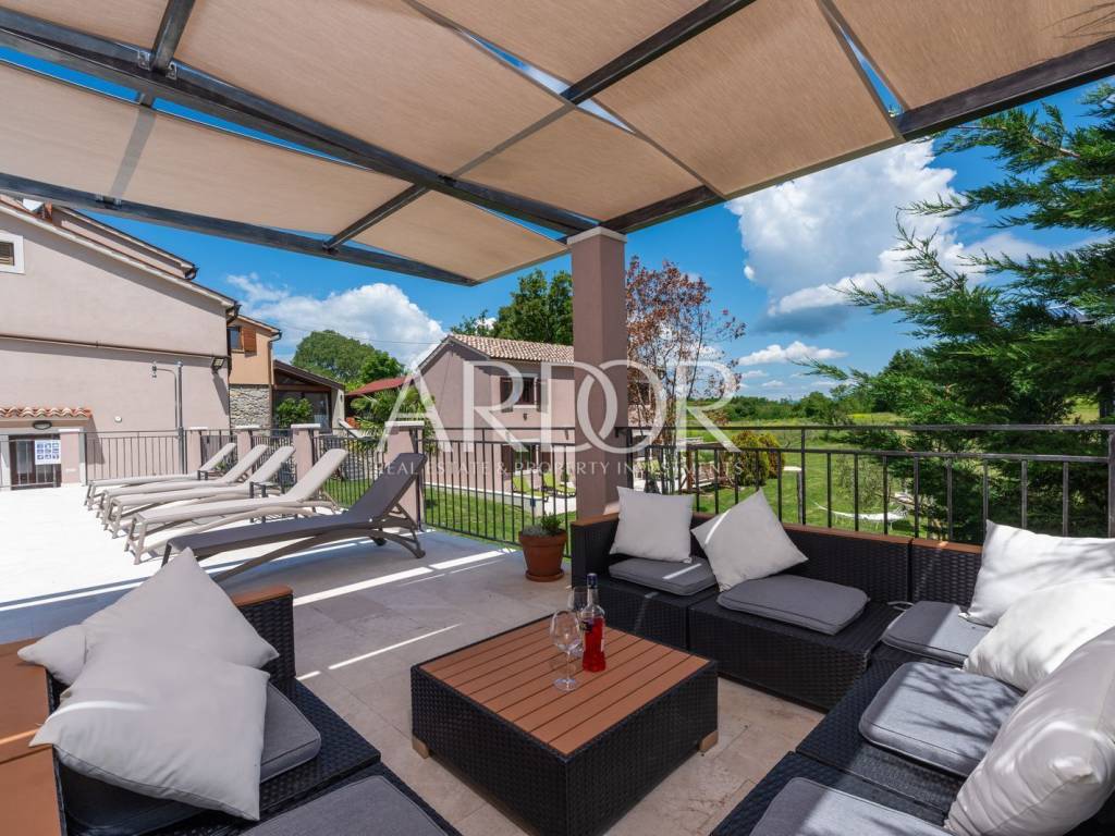 A ten minute drive to Rovinj separates you from this modern villa with traditional elements. The area is 388 m2, with a garden of 5,383 m2, which, together with the villa, forms a unique whole with many possibilities in the future.