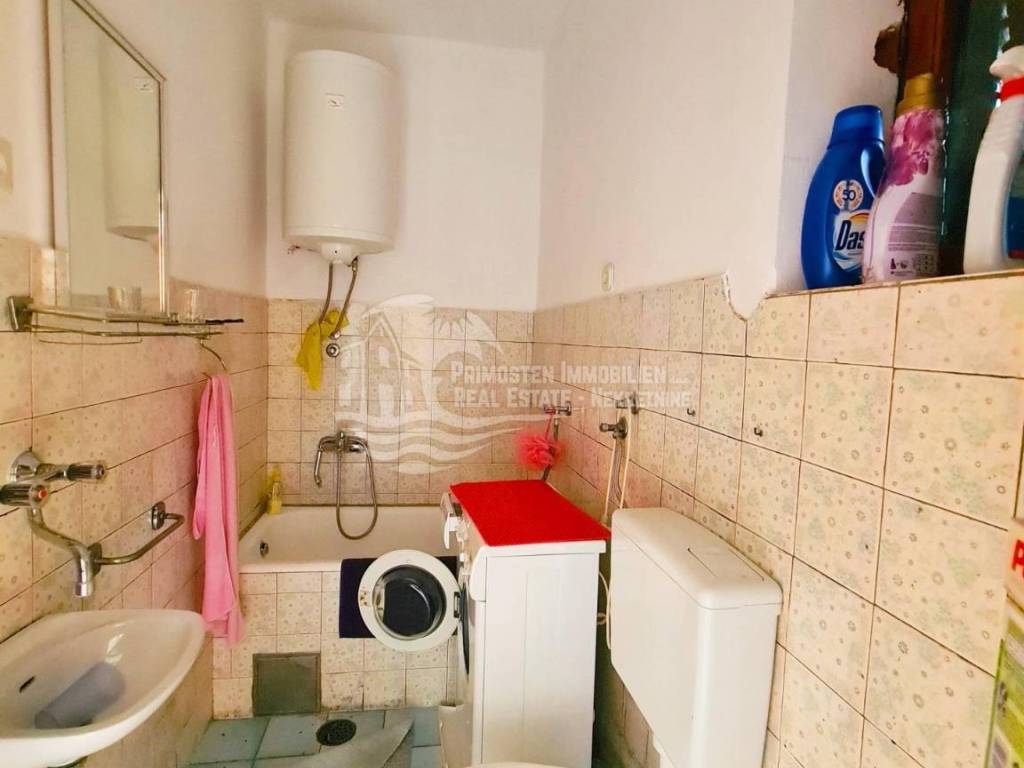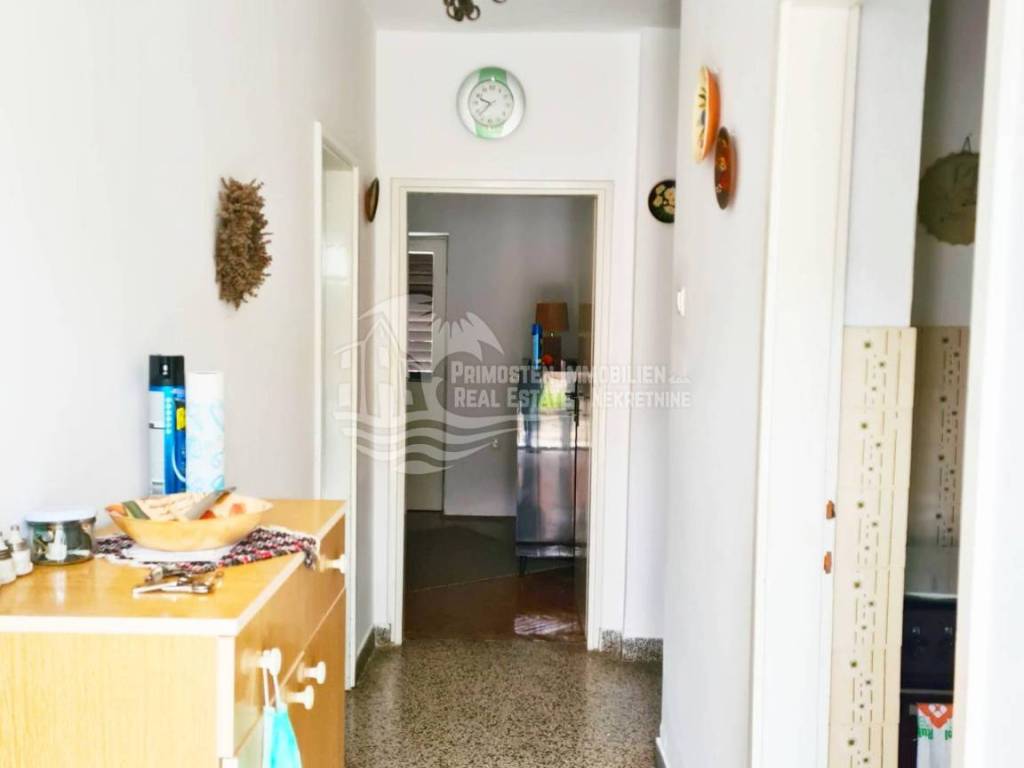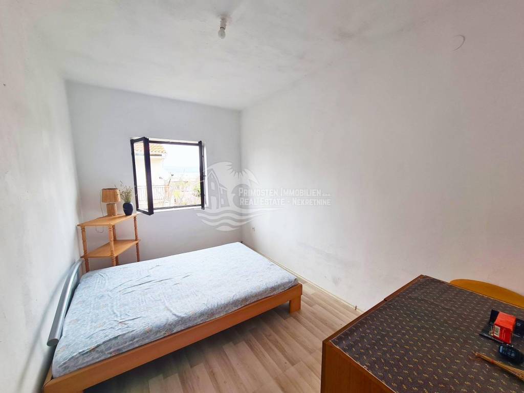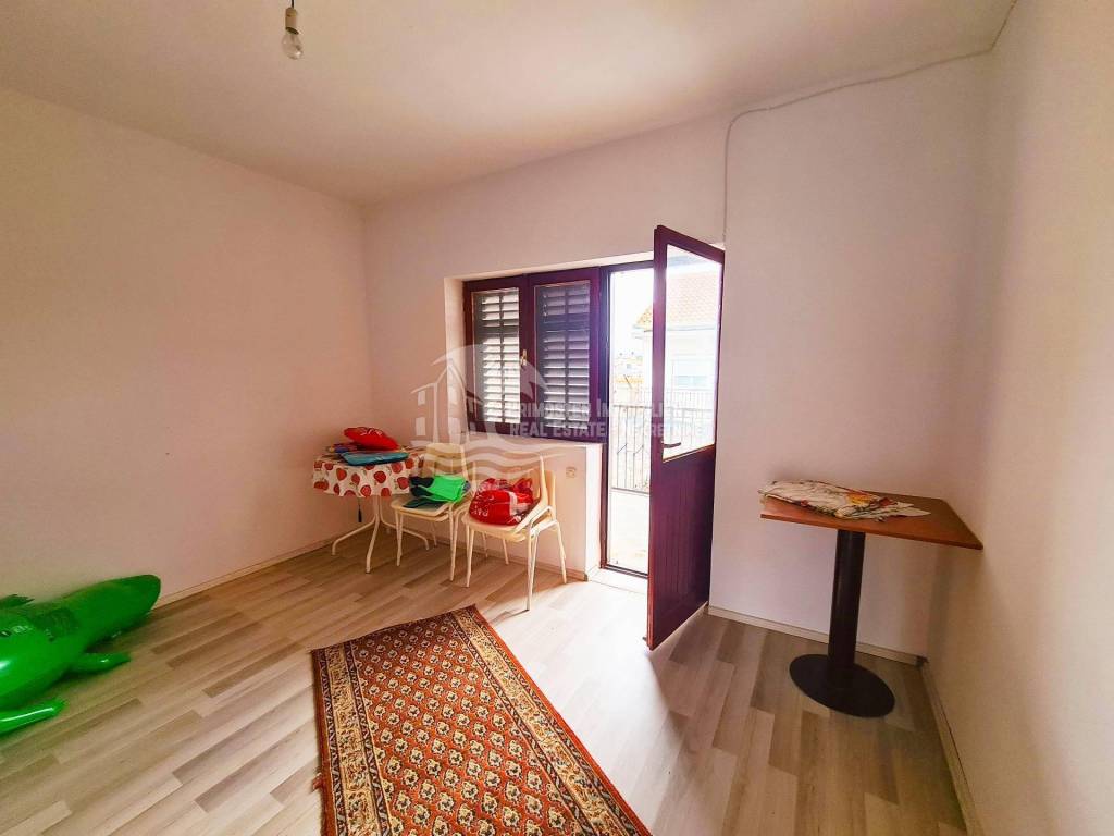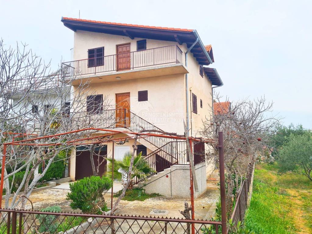 Two-storey house in Raslina, total living area 189 m². The land on which the house is located is 276 m². The house consists of a ground floor, first and second floors. The ground floor consists of: living room, kitchen, bathroom and two bedrooms. The first floor is completely identical to the ground floor. The second floor is in the ROH BAU phase. Distance from the sea is 30m. Complete documentation is in order.
