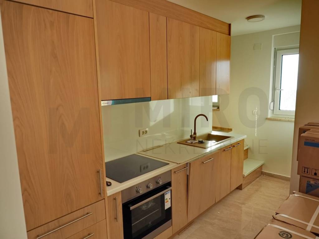 Island of Krk, Njivice, apartment on the upper ground floor with a terrace and a family room. Two-room apartment with a living room in a quiet location with a view of the sea. It consists of a living room with a kitchen and a dining room, a bathroom, two bedrooms, a total living area of 61,78 m2 and a terrace. It has one parking space. Furniture is not included in the price, but there is also the possibility of buying an unfurnished apartment. It has 66 m2 of landscaped garden with a barbecue. The property is included in the VAT system, so the buyer does not pay real estate sales tax. Visit us and find the square footage of your home!