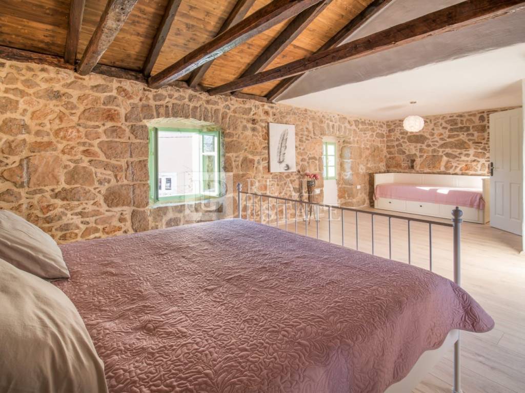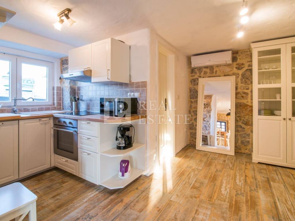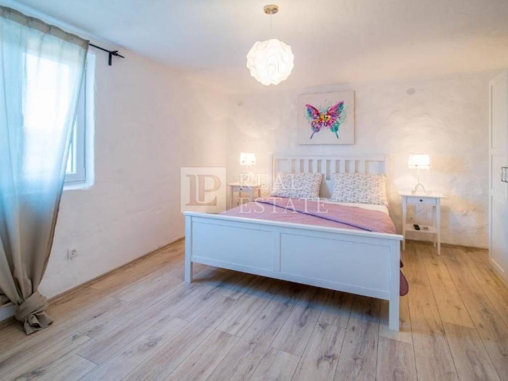 The house was completely renovated in 2016, and consists of a ground floor and two floors. The decoration of the house and all the details have been carefully chosen and represent a unique Mediterranean style and give a special atmosphere. On the ground floor there is a living room, dining room, kitchen and toilet, while on the first and second floor there are two bedrooms and one bathroom each (four bedrooms and two bathrooms in total). The floors are connected by internal stairs.