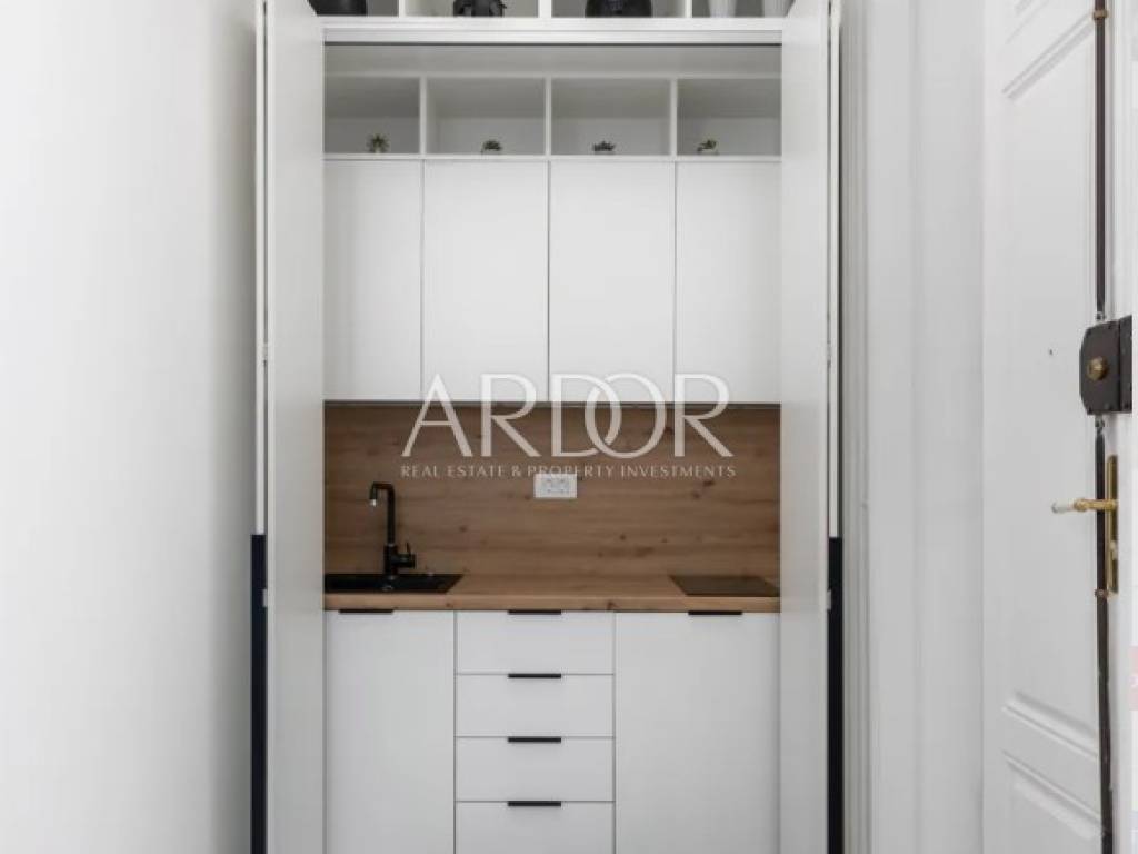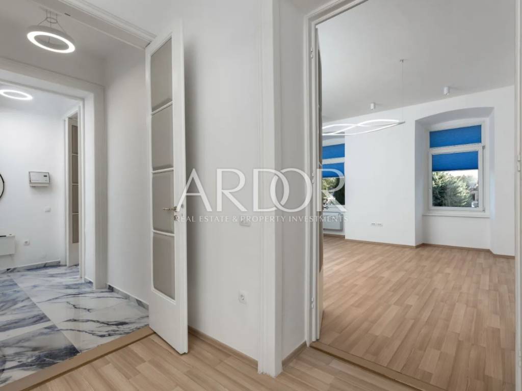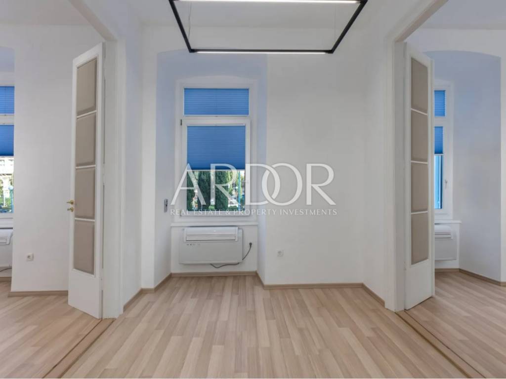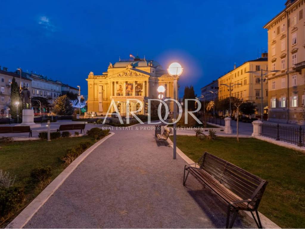 Iznajmljuje se ekskluzivan poslovni prostor površine 87,02 m² smješten u očuvanoj austrougarskoj zgradi, odmah uz HNK Ivan pl. Zajc. Prostor odlikuju visoki stropovi, obilje prirodne svjetlosti i pogled na kazališni trg, kazalište i novouređenu fontanu, što mu daje poseban prestiž. Neposredna blizina buduće luksuzne marine Porto Baroš, čija gradnja započinje uskoro, čini ovu nekretninu još atraktivnijom. Nova mega-marina donijet će Rijeci dodatni prestiž, pružajući budućim zakupcima jedinstvenu priliku za poslovanje na iznimno atraktivnoj lokaciji koja će postati središte događanja.