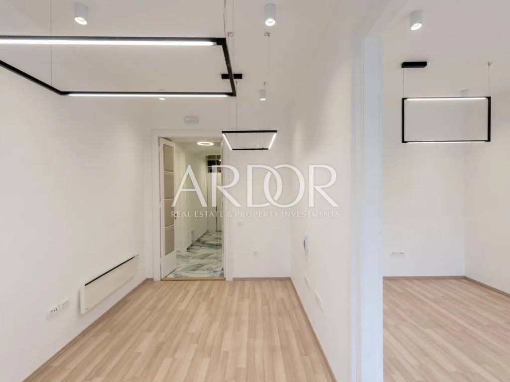 Prostor se sastoji od četiri prostrane sobe, hodnika, kupaonice i čajne kuhinje izrađene po mjeri. Opremljen je kvalitetnim uredskim namještajem prilagođenim modernom poslovanju, luksuzno uređenom kupaonicom s dizajnerskim detaljima, novom mrežnom instalacijom s 32 mrežna priključka, dvostrukim optičkim kabelom, novim električnim instalacijama s 56 utičnica, dizajnerskom LED rasvjetom i klima uređajima u svakoj prostoriji s mogućnošću kontrole putem mobilne aplikacije. Norveški radijatori su dodatna opcija grijanja. Sigurnost i praktičnost osigurani su drvenim ulaznim vratima s električnom bravom, kamerom u hodniku s mobilnim pristupom i wireless pojačivačem signala.