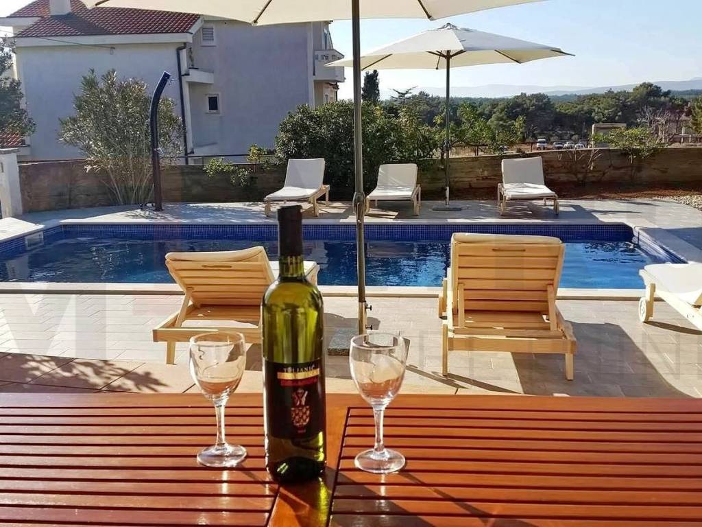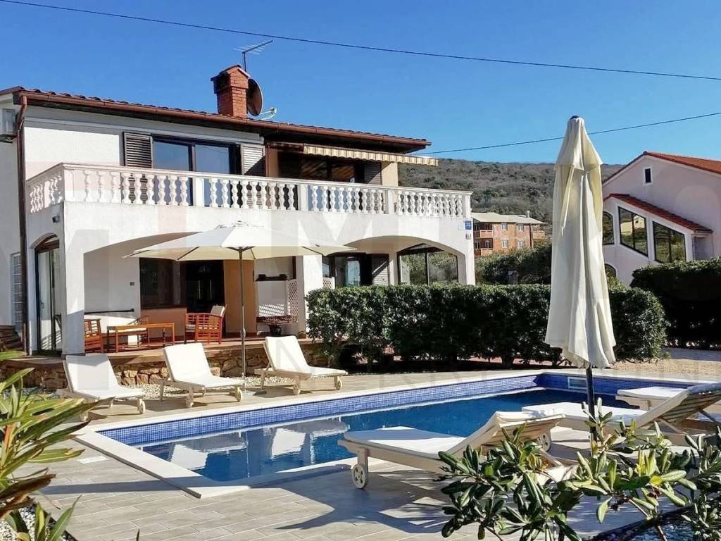 Island of Krk, Punat, detached house for sale with two separate apartments, swimming pool and large garden. The house consists of a ground floor and first floor. Each apartment is 100 m2 and consists of 2 bedrooms, bathroom, dining room and living room, terrace, hallway and balcony. On the beautifully landscaped garden there is also an auxiliary building of 25 m2, garage, swimming pool with sundeck, barbecue, place for socializing. It is possible to park four cars on the garden. The house has a new roof made in 2024 and a solar power plant, it is sold fully furnished. Beautiful location 300m from the sea. The owner of the property is a natural person and when transferring its ownership, the buyer is charged a real estate transfer tax of 3%. The owner of the house guarantees proper ownership documentation. Visit us and find the square footage of your home!