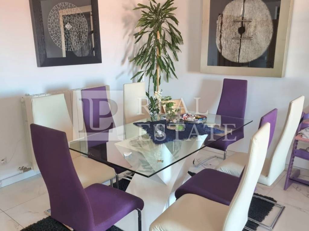 The apartment is located on the 1st floor, and the living area of 125 m2 consists of a hallway, three bedrooms, two bathrooms, an open space consisting of a kitchen, dining room and living room, and two terraces with a view of the sea.