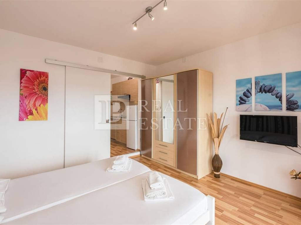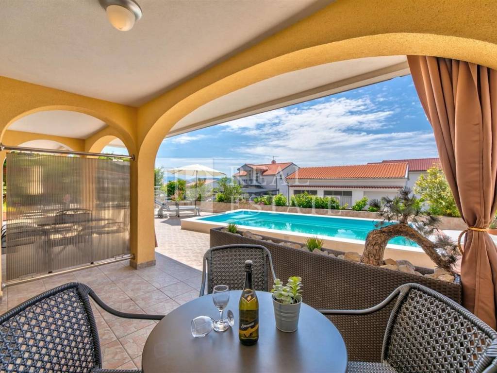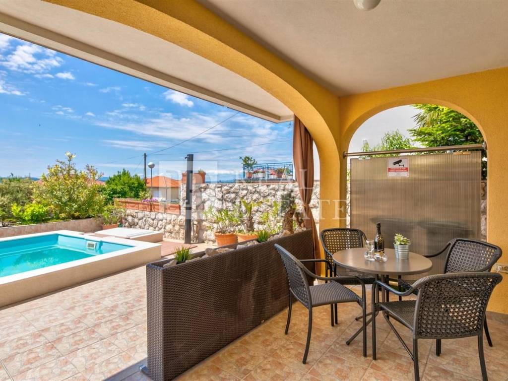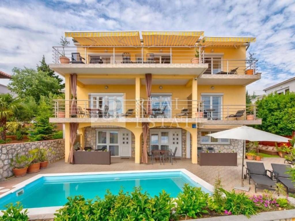 In the basement there is a studio apartment, on the ground floor one studio apartment of 36 m2, one two-bedroom apartment with a living room and two bathrooms and a storage room. On the first floor there are three one-room apartments with their own terraces, and on the second floor there is a comfortable three-room apartment with a living room, two bathrooms and a large terrace. From the numerous terraces that adorn this property, there is a spectacular view of the sea and the island of Krk.