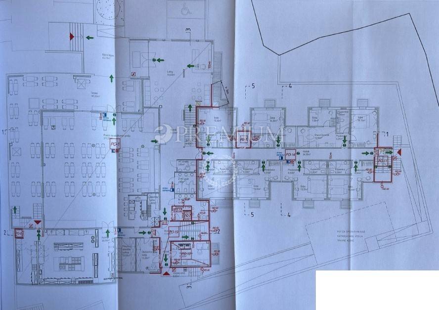 Na 1. katu nalazi se 17 soba, a na 2. katu još 7, te bar s terasom.