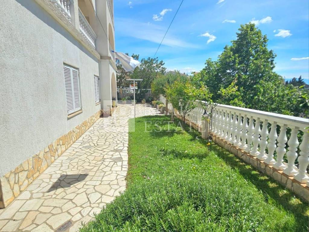 The house is located on a plot of 616 m2 and is surrounded by a beautiful green garden. This spacious house extends over four floors, and an open view of the sea can be seen from the ground floor.