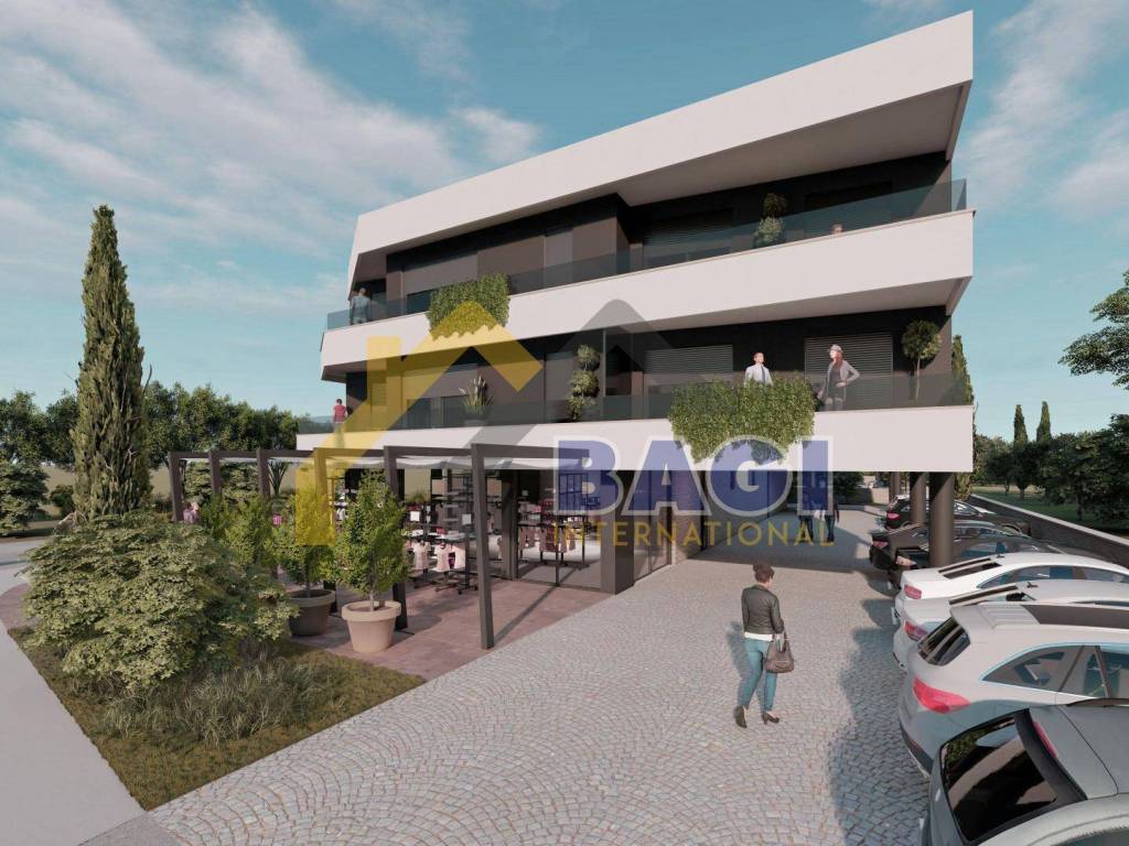 In a great location in Medulin, only 80 meters from the sea and the beach is a building of modern design and top quality. We are selling an apartment in the building on the first floor. The apartment consists of two bedrooms, bathroom, living room with kitchen and dining area and exit to the terrace. The price of the apartment includes one parking space.