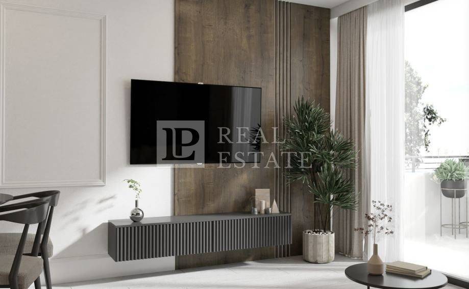 The living room has access to a garden of up to 130 m2, which is owned by the apartment, and where it is possible to create a summer kitchen or a gazebo as an additional space for socializing outdoors.