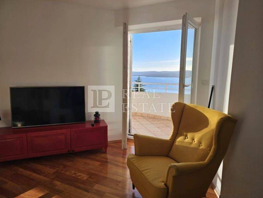 The apartment of 55.50 m2 consists of a hallway, bedroom, bathroom, kitchen and living room, which are open concept. The living room opens onto a unique terrace with a breathtaking view of the sea and the island of Krk.