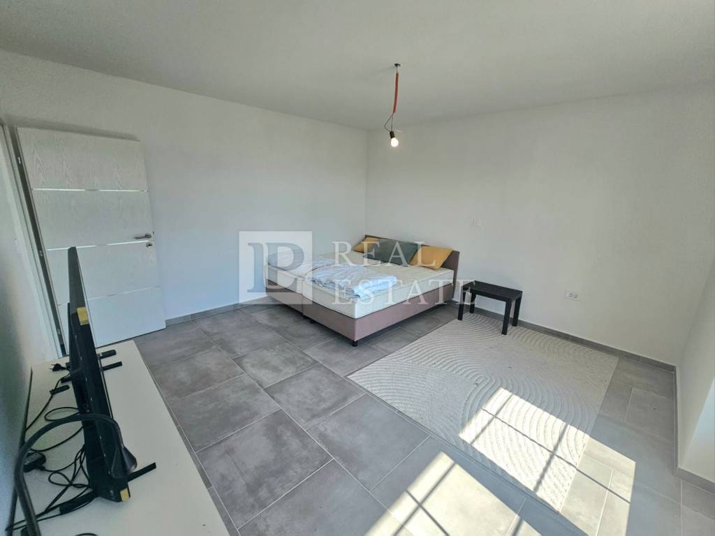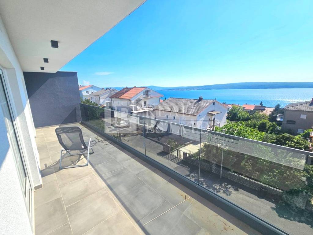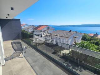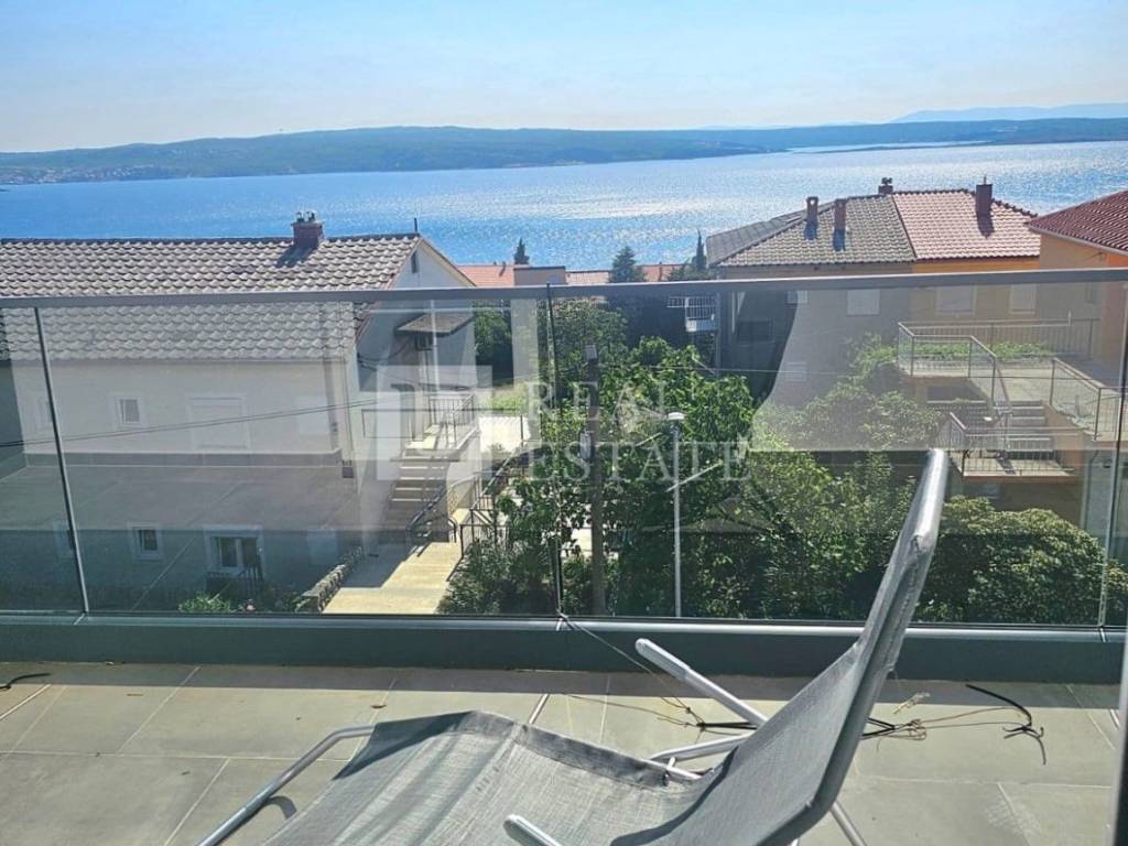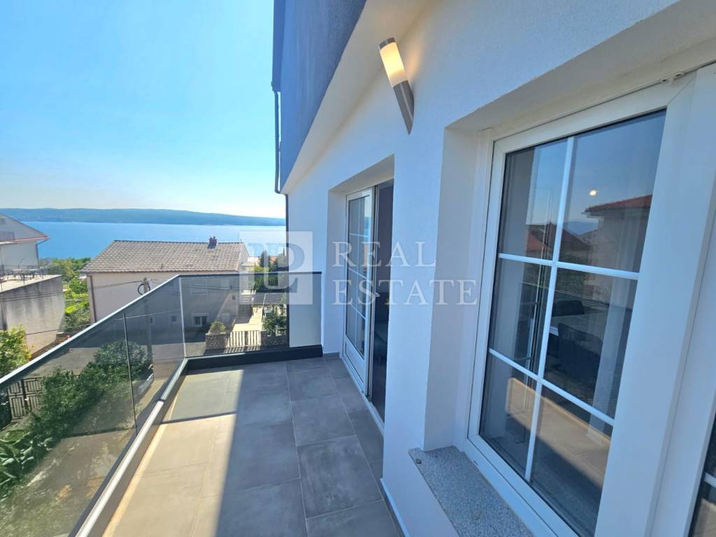 The apartment of 64 m2 consists of a hallway, kitchen with dining room, living room, bathroom and two spacious bedrooms. What sets this apartment apart are the two beautiful terraces. The living room opens onto an east-facing terrace, while both bedrooms have access to a second, covered terrace that faces south and extends the entire length of the apartment. Both terraces offer a fantastic, open view of the sea and the island of Krk.