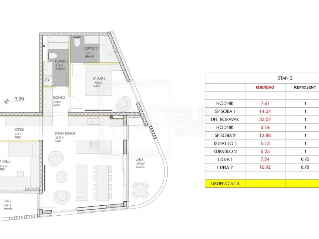 The apartment is sold in the turnkey phase (finished floors and sanitary facilities, without furniture). At this stage of construction, there is the possibility of installing ceramics, floor coverings, depending on the customer's wishes.