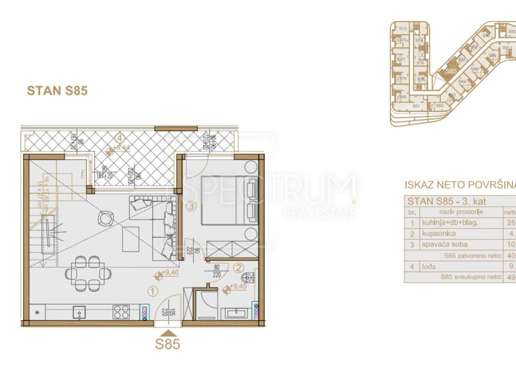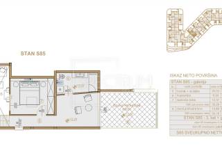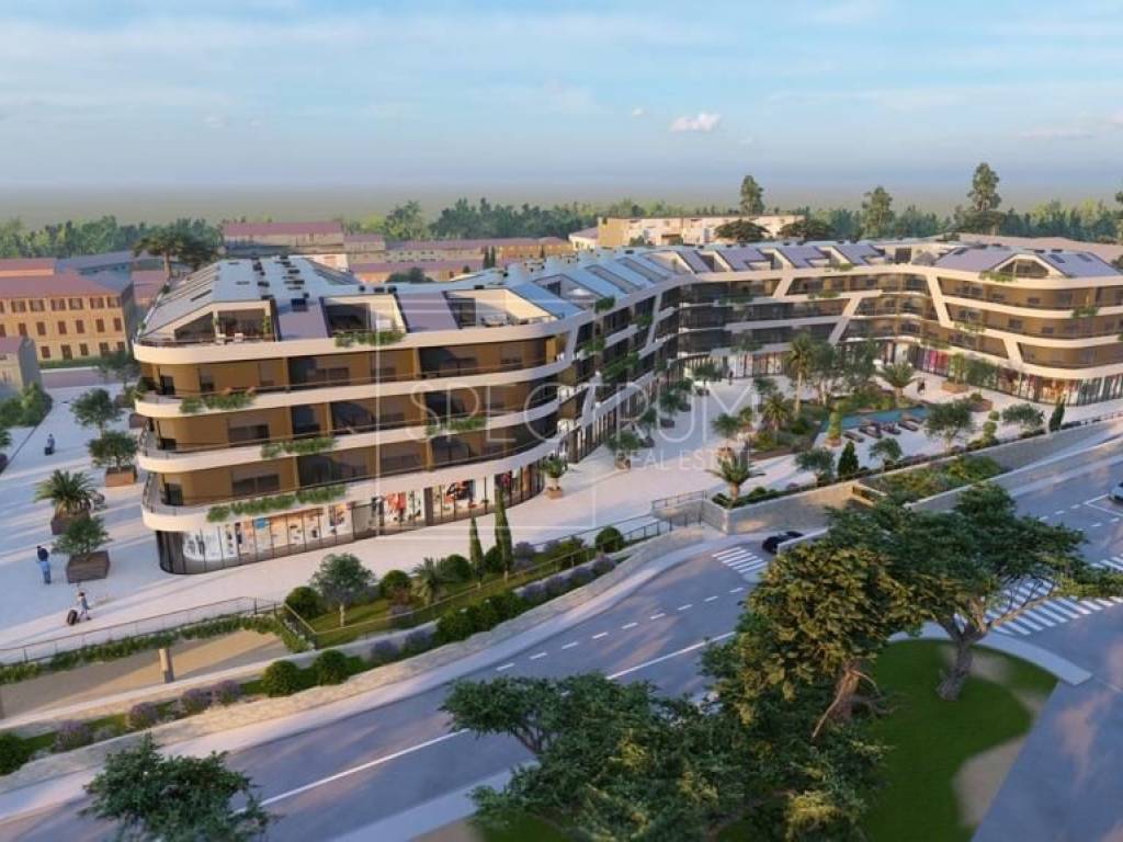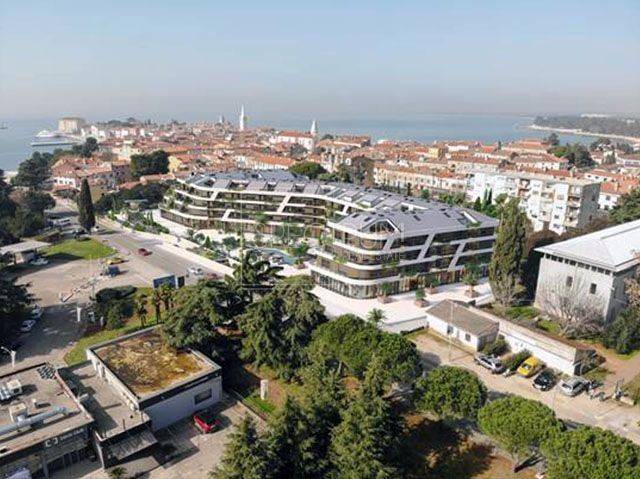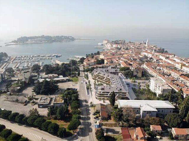 The apartment extends through the 3rd floor and the gallery of the newly built residential and commercial complex, which consists of 2 underground and 3 above-ground floors with galleries. The area of ​​the apartment is 90.29 m2. The apartment consists of a living room with a kitchen and a dining room, 2 bedrooms, 2 bathrooms, a loggia and a roof terrace as part of the gallery. The apartment is heated by air conditioning and floor heating in the bathroom. The apartment offers a view of the city of Poreč and the sea, thus giving a higher quality housing dimension. High-quality materials were used in the construction, from carpentry, sanitary ware, floor coverings. The project itself is characterized by modern design, comfort and luxury.