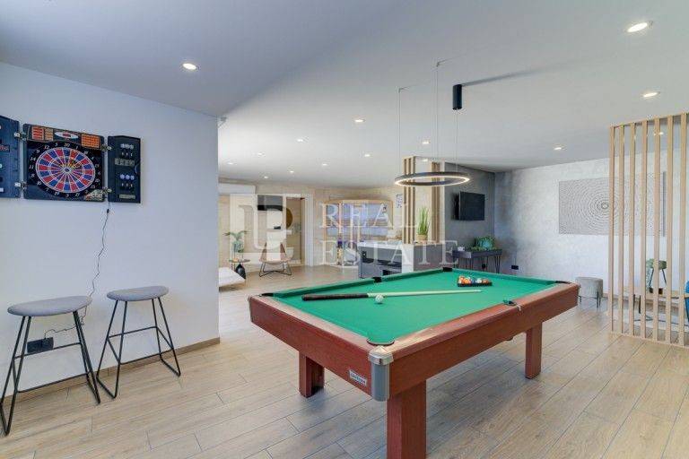 Inside the garden there is an additional facility for relaxation and entertainment, which includes a wellness area with a sauna, jacuzzi and bathroom, a living room/games room and a billiards and darts table.