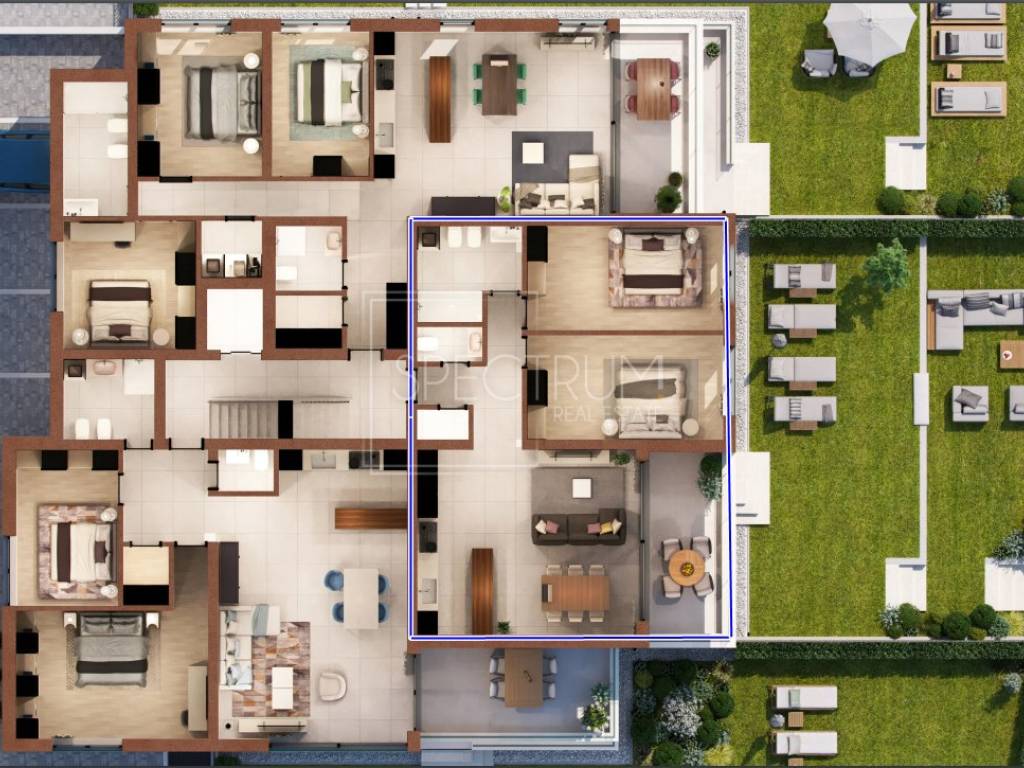 The apartment is located on the 1st floor of a newly built residential building with 8 residential units. The apartment has a surface area of ​​120.59 m2. The apartment consists of a living room with an open-space kitchen and dining room, 3 bedrooms, a bathroom, a toilet, a laundry room, a hallway, a storage room and a covered terrace. The terrace offers a view of the sea. Due to its surface area and good layout, the apartment really offers comfort. The apartment is heated by air conditioning and electric underfloor heating. The apartment is sold in a turnkey phase (finished floors and sanitary facilities, without furniture). High-quality materials were used in the construction, 25 cm porotherm brick, 10 cm thermal insulation, anthracite-colored aluminum joinery with electric shutters and mosquito nets. In the basement of the building there is a storage room that belongs to the apartment. The apartment also owns a parking space with an electric vehicle charger located right next to the building. The building in which the apartment is located also has an elevator.