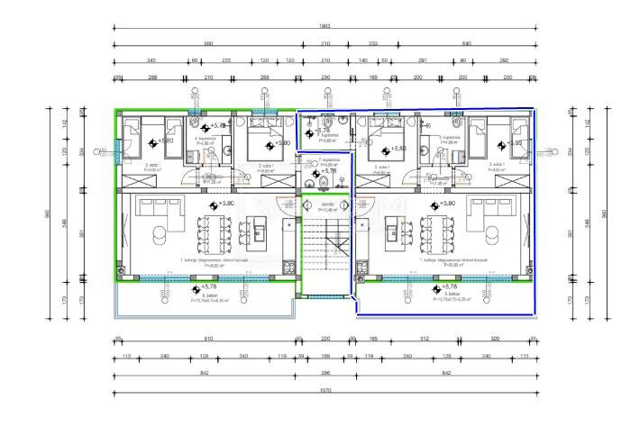 The apartment is being sold in a turnkey phase (finished floors and bathrooms, without furniture). Heating is regulated by air conditioning and electric underfloor heating. Quality materials were used in the construction, a facade with 10 cm thick thermal insulation, joinery with electric shutters. The planned completion of the works is the end of 2025.