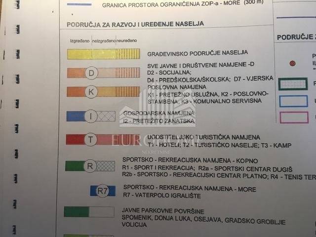 Zemljište je u zoni T1 i T2 namjene, što omogućuje izgradnju turističkih objekata kao što su hoteli, apartmanski kompleksi ili kampovi.
