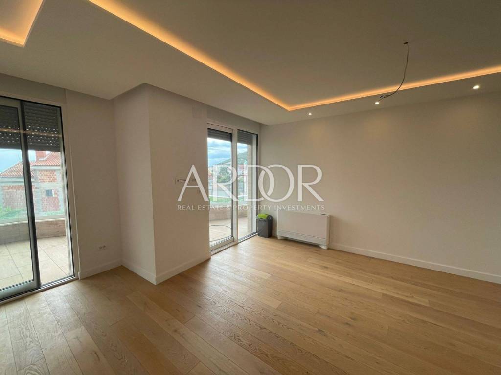 A quality and modern new building with an open sea view is located in a quiet part of Opatija, but at the same time close to all amenities, just 5 minutes from the beaches and the center. Very elegant design and concept of the building with modern organization and arrangement of apartments. Thanks to the large glass surfaces, all apartments are full of light. The apartments are equipped with remote-controlled fan coils with heating/cooling function in each room (heat pumps), solar collectors for hot water preparation, a combination of natural and mechanical ventilation, and underfloor heating in the kitchen and bathrooms.