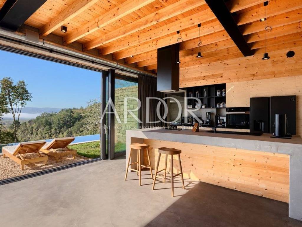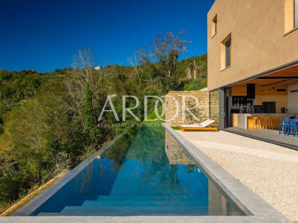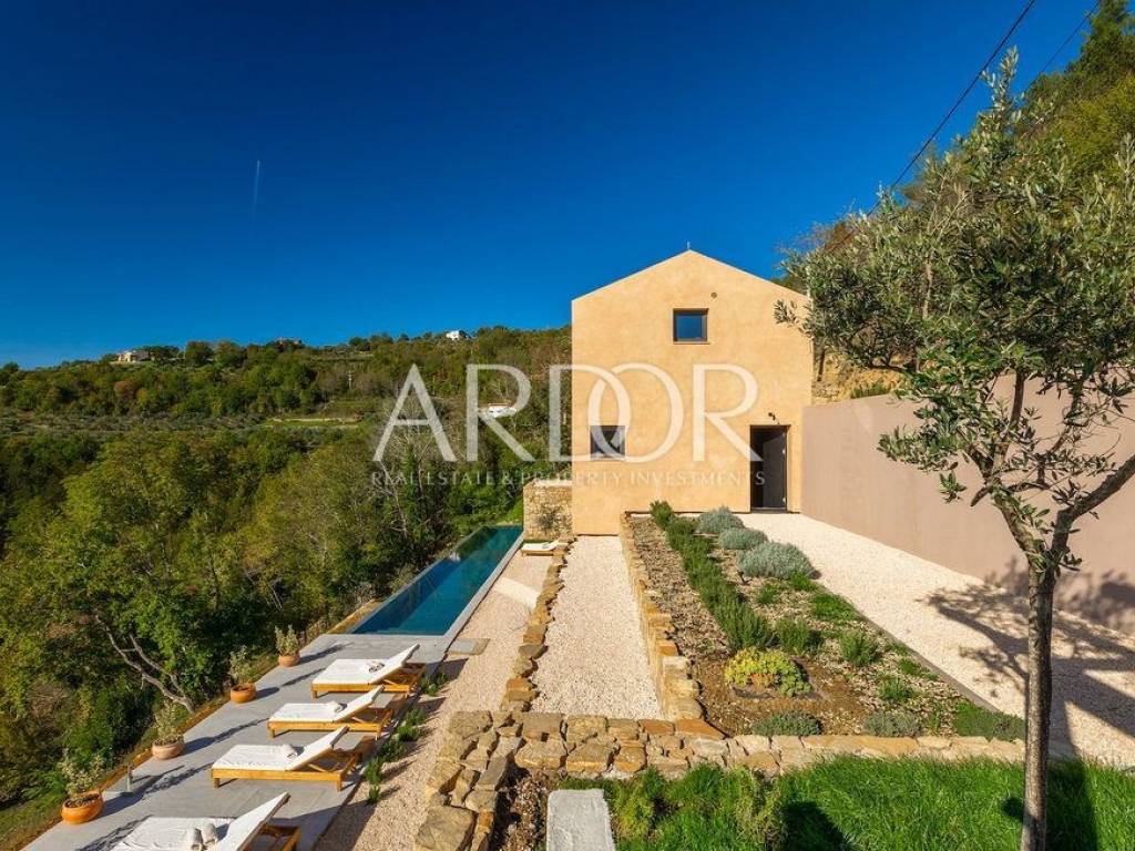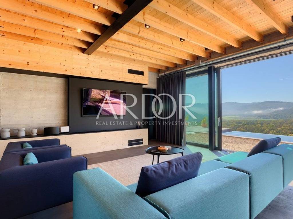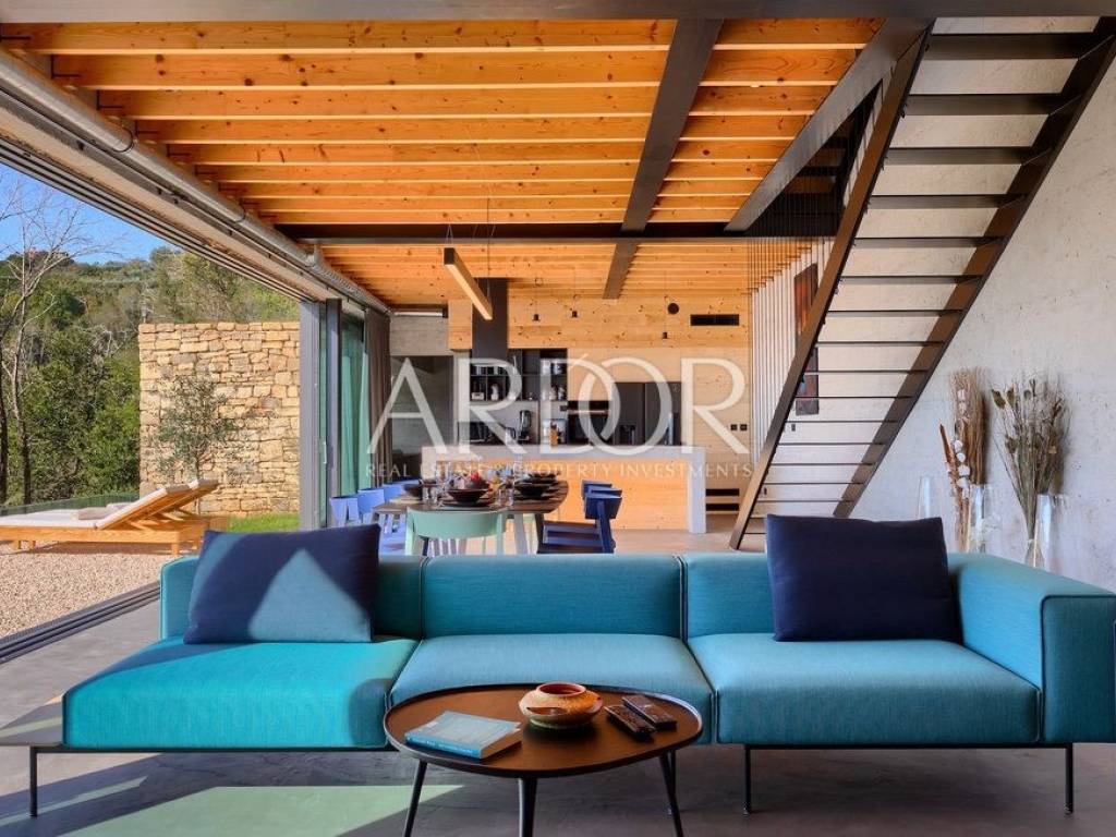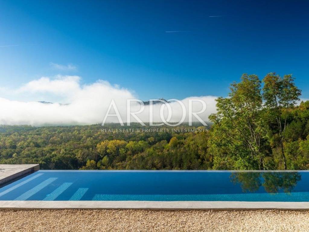 Situated on a hill in the heart of Istria, one of the most beautiful destinations, this villa is located in the immediate vicinity of some of the most famous wineries and restaurants. This Istrian region is known for its excellent wines, top-quality virgin olive oil and truffles.