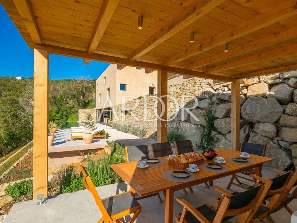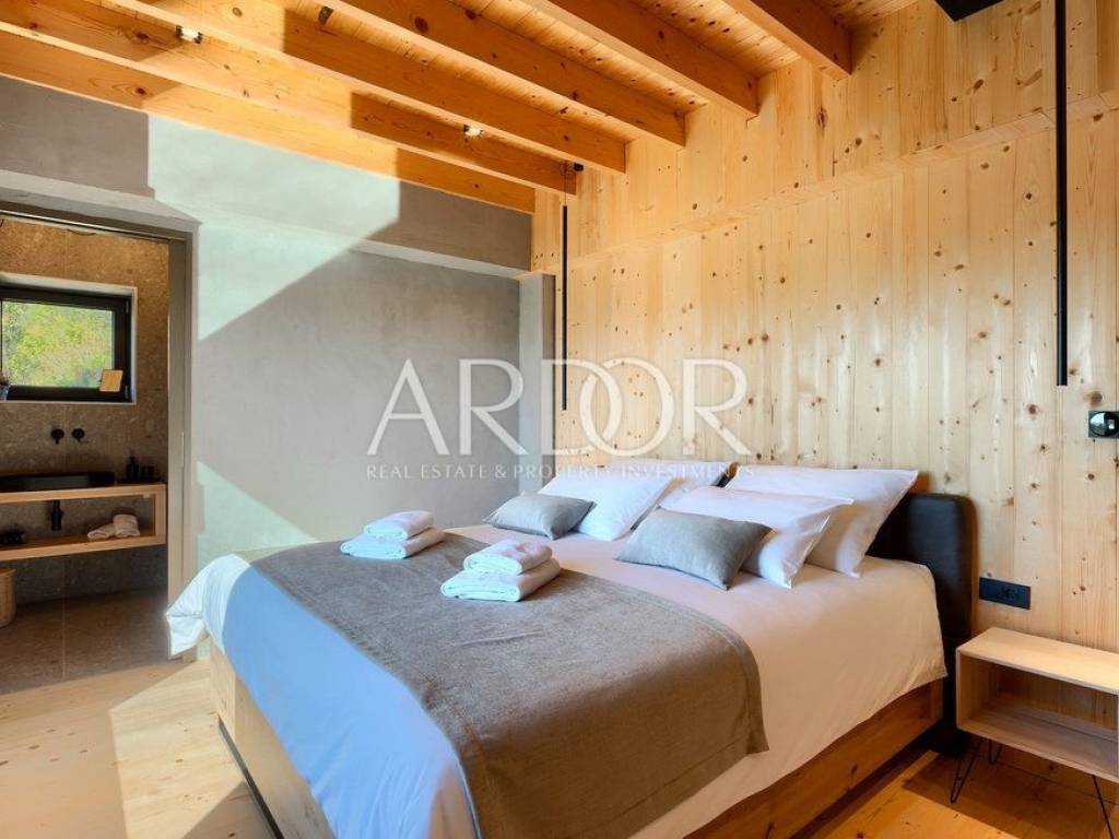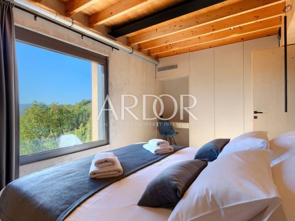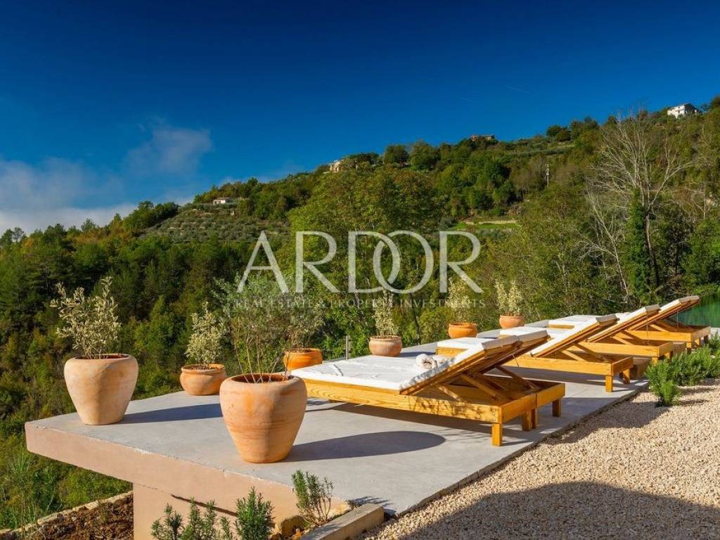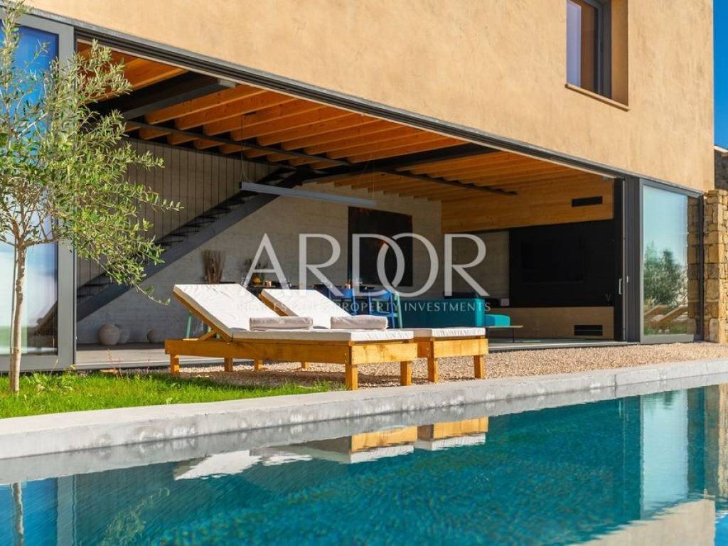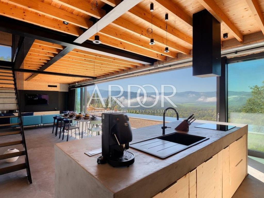 Situated on a hill in the heart of Istria, one of the most beautiful destinations, this villa is located in the immediate vicinity of some of the most famous wineries and restaurants. This Istrian region is known for its excellent wines, top-quality virgin olive oil and truffles.