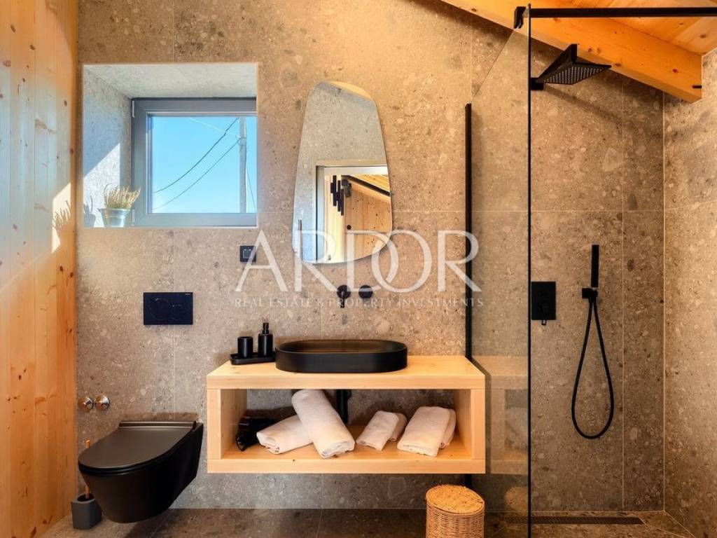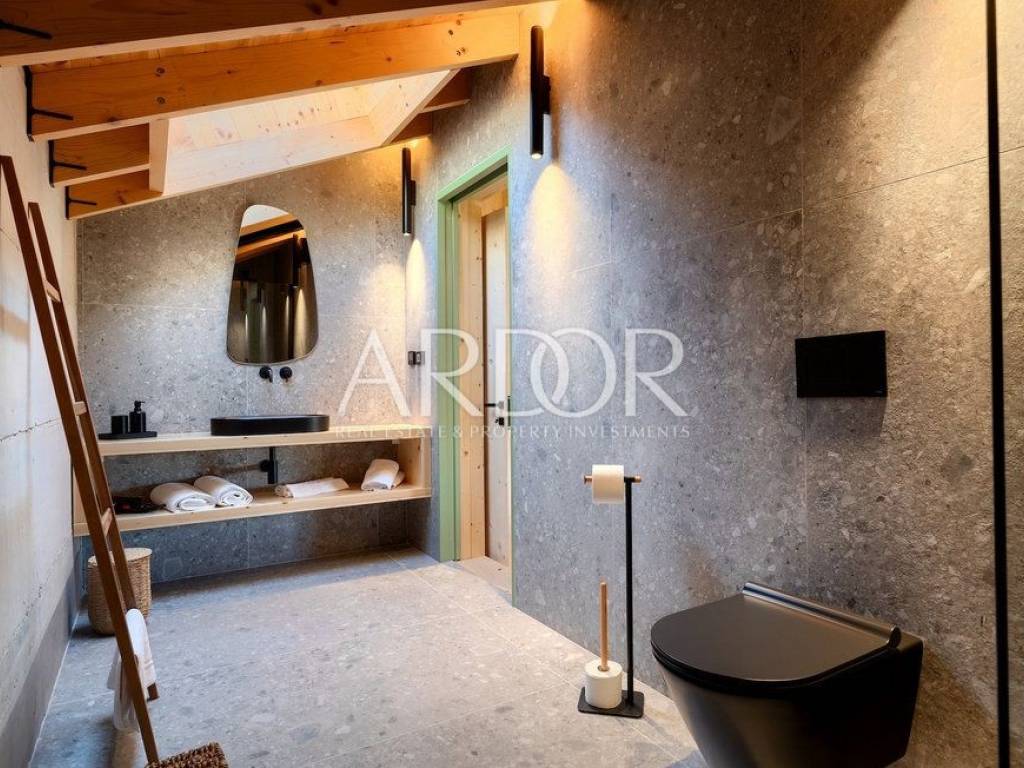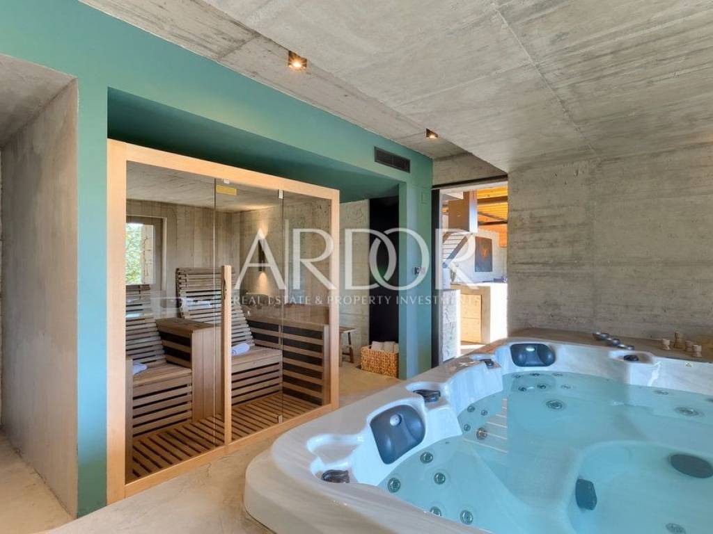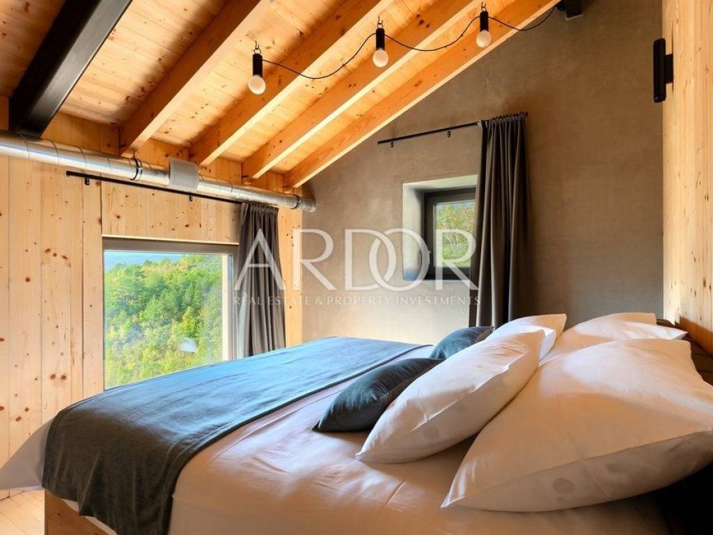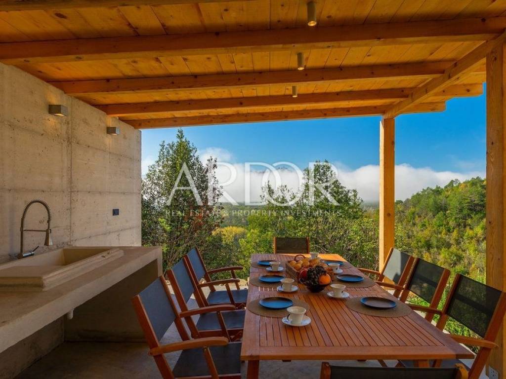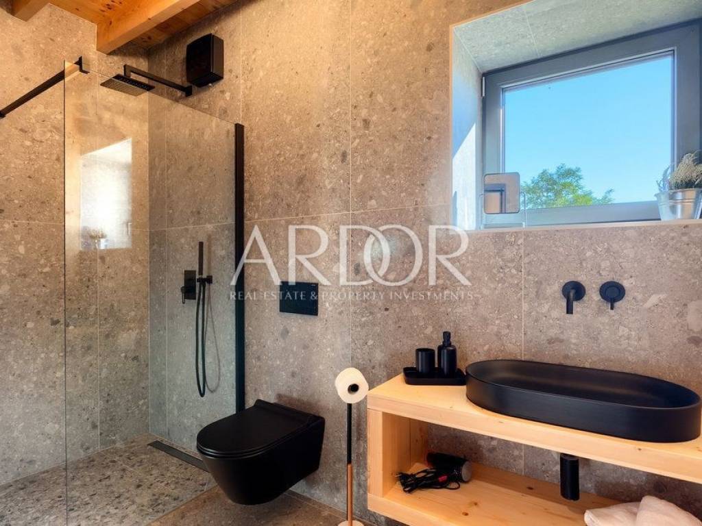 Situated on a hill in the heart of Istria, one of the most beautiful destinations, this villa is located in the immediate vicinity of some of the most famous wineries and restaurants. This Istrian region is known for its excellent wines, top-quality virgin olive oil and truffles.