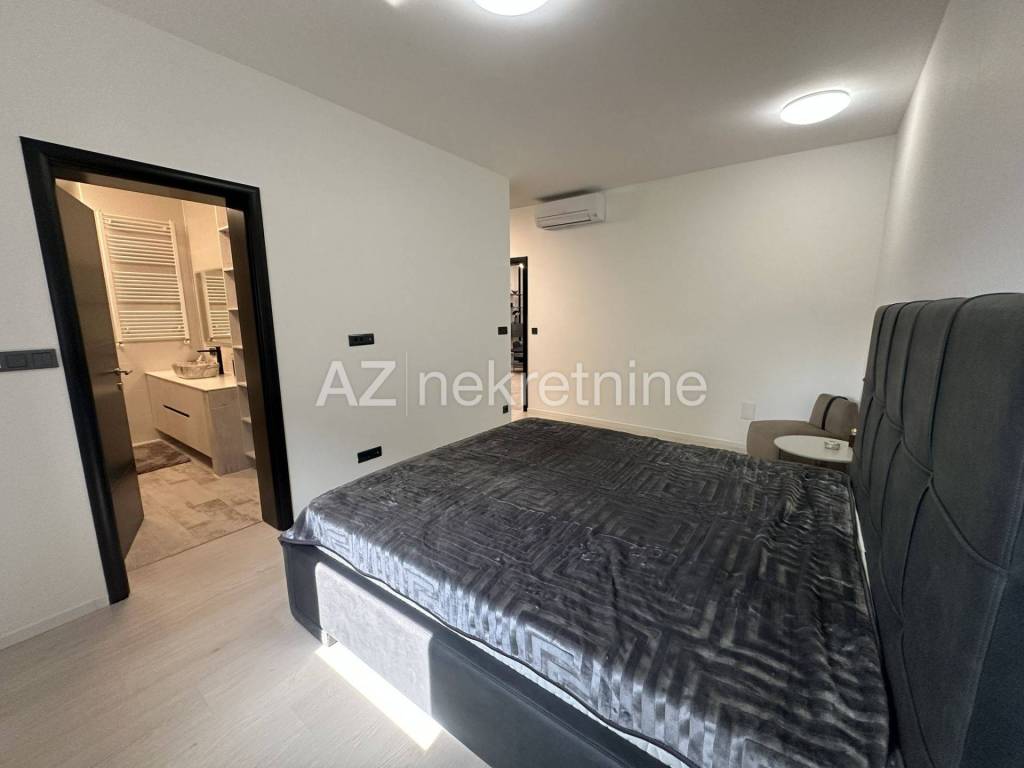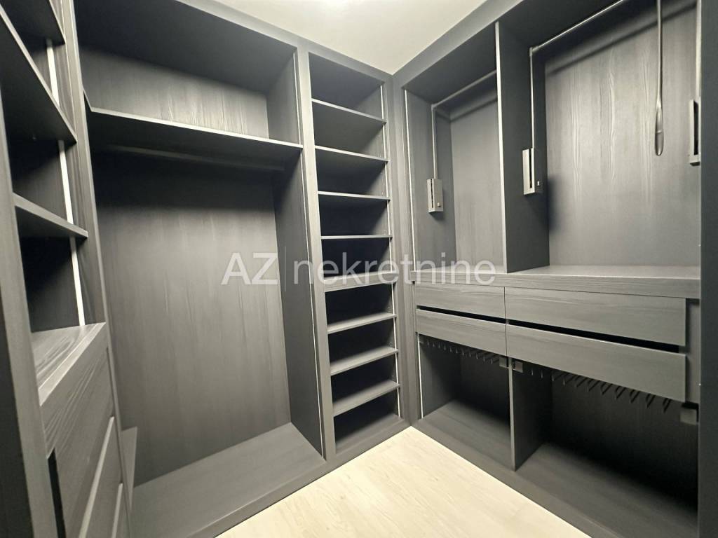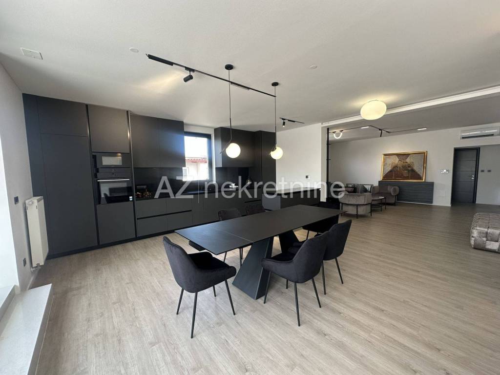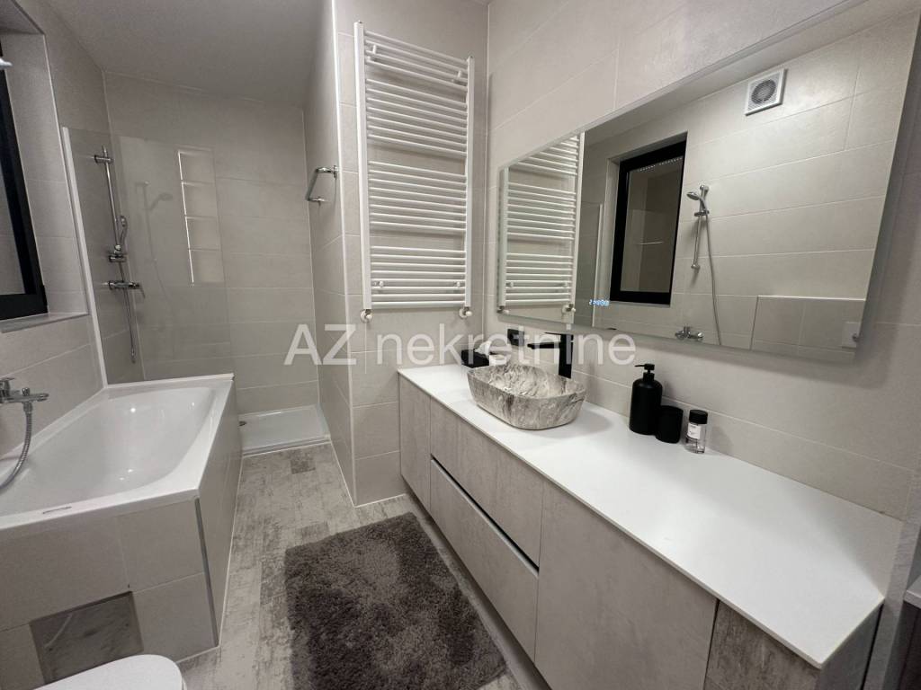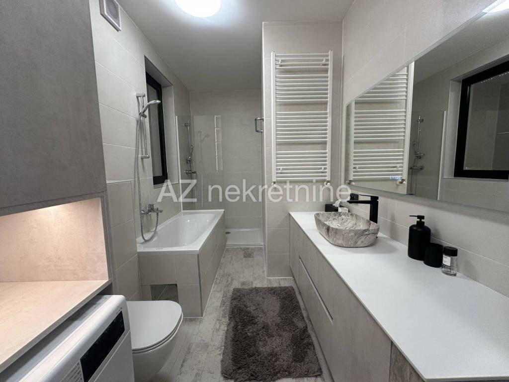 For the first time, a new modern apartment with an excellent layout is being rented in a building from 2022. The apartment is entered directly by elevator, and consists of an entrance hall, a bathroom, three bedrooms, of which the master bedroom has its own bathroom and dressing room, a living room with a dining room and a kitchen with access to a spacious terrace. The terrace has a remote-controlled roof pergola, north/west orientation. The apartment also has a two-car garage with direct entrance to the building. The location of the apartment is excellent for anyone who likes to live not far from the center, but still close to the exit from the city and near Jarun. It is only a 10-minute drive to the International School on Knežija.