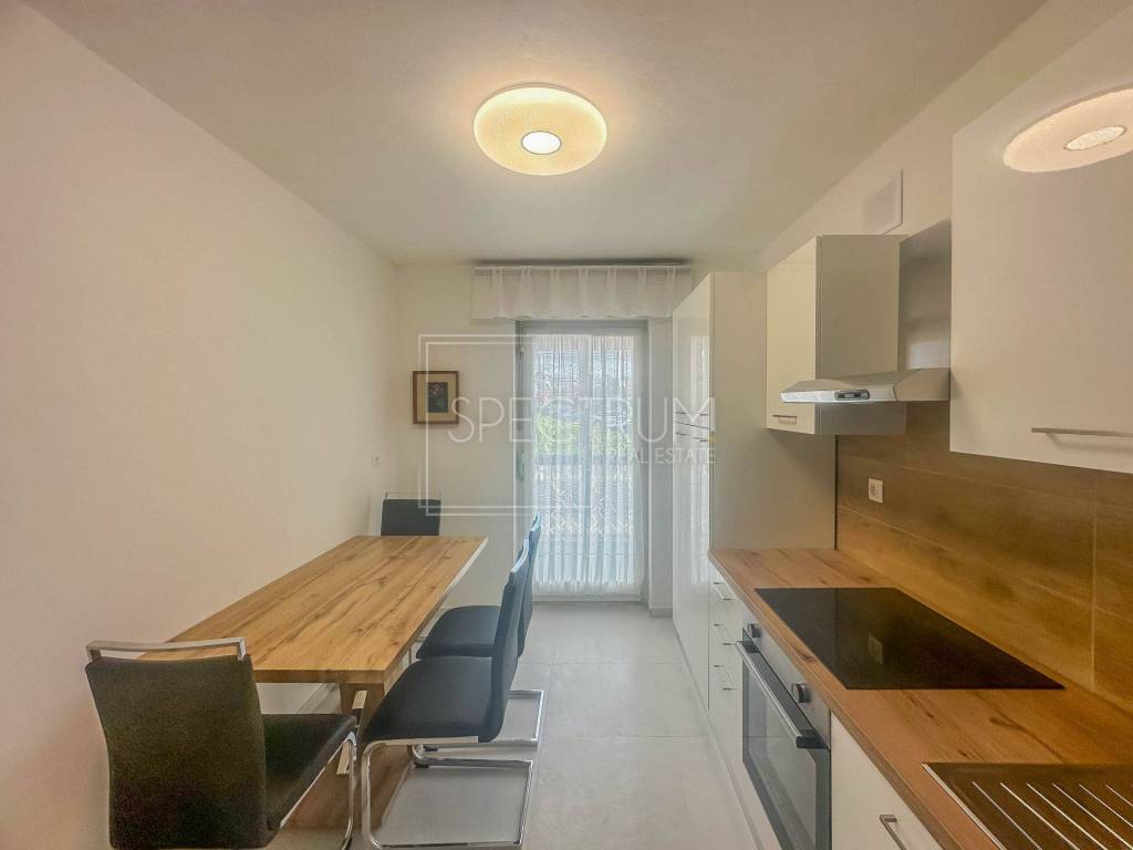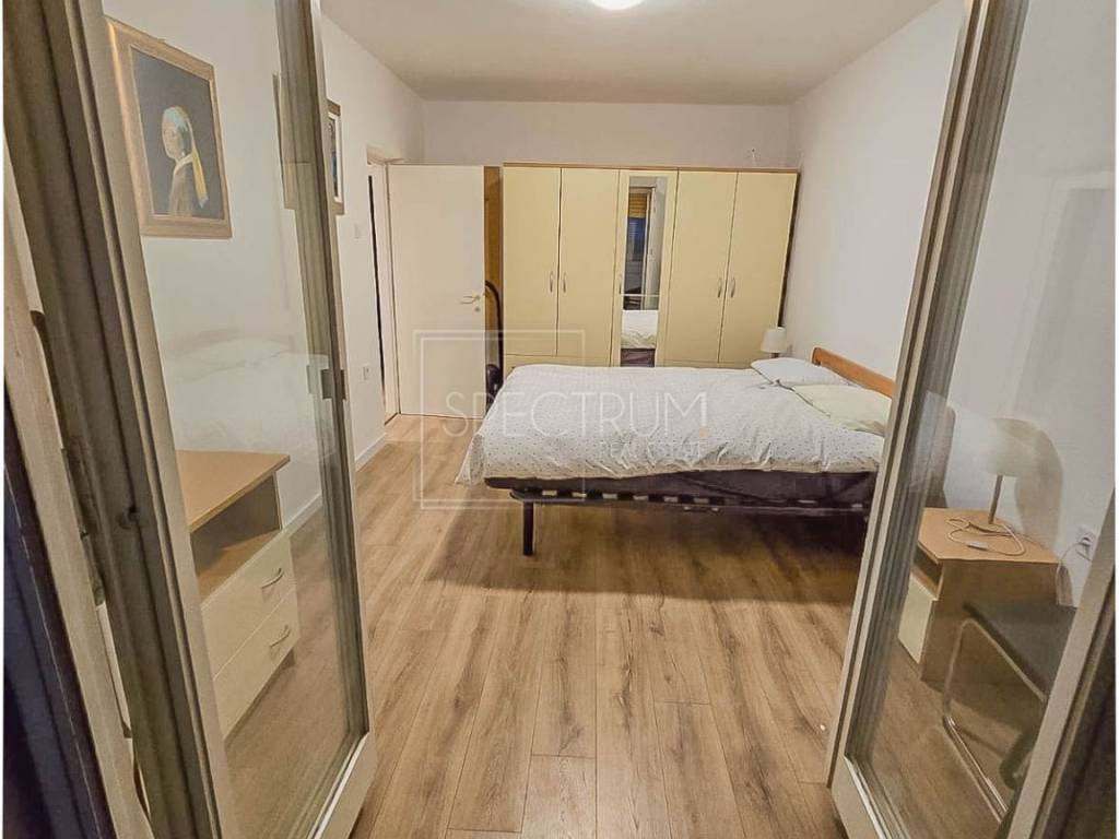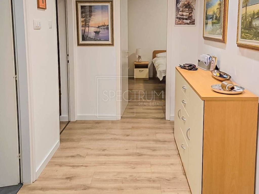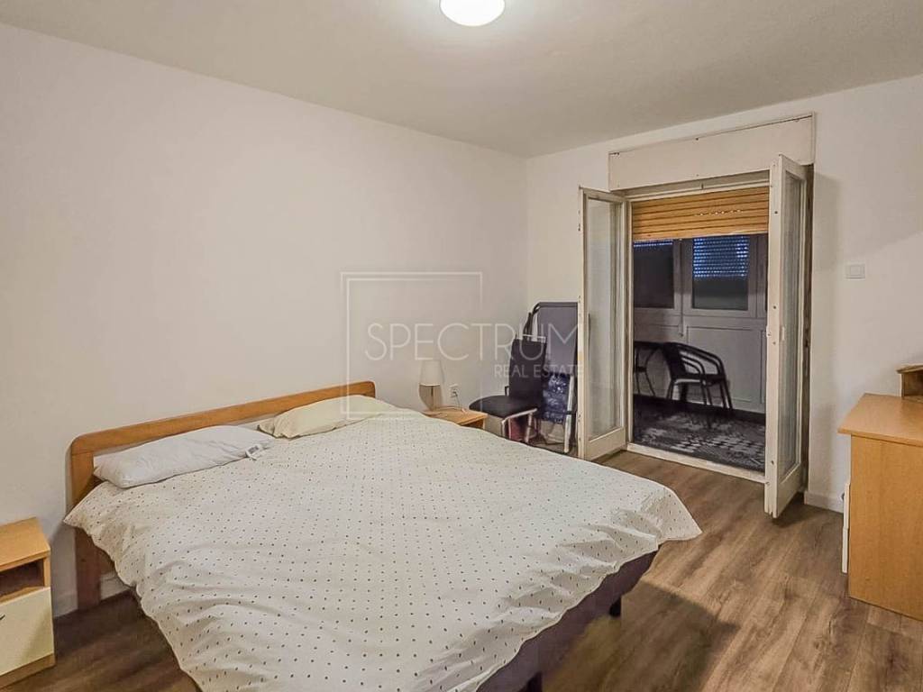 The apartment is located on the high ground floor of a residential building. The apartment has an area of ​​73.39 m2. The apartment consists of a living room, kitchen with dining room, 2 bedrooms, hallway, bathroom and 2 covered closed terraces. One terrace can be accessed from the kitchen, and the other terrace can be accessed from the living room and bedroom. The apartment is heated by air conditioning, and there is also the possibility of installing a wood-burning stove. The apartment has recently been practically completely renovated (including installations), and a new thermal facade has been installed on the building. Due to its larger area, the apartment really offers comfort and convenience. The apartment is being sold furnished. There is also a storage room in the building that belongs to the apartment.