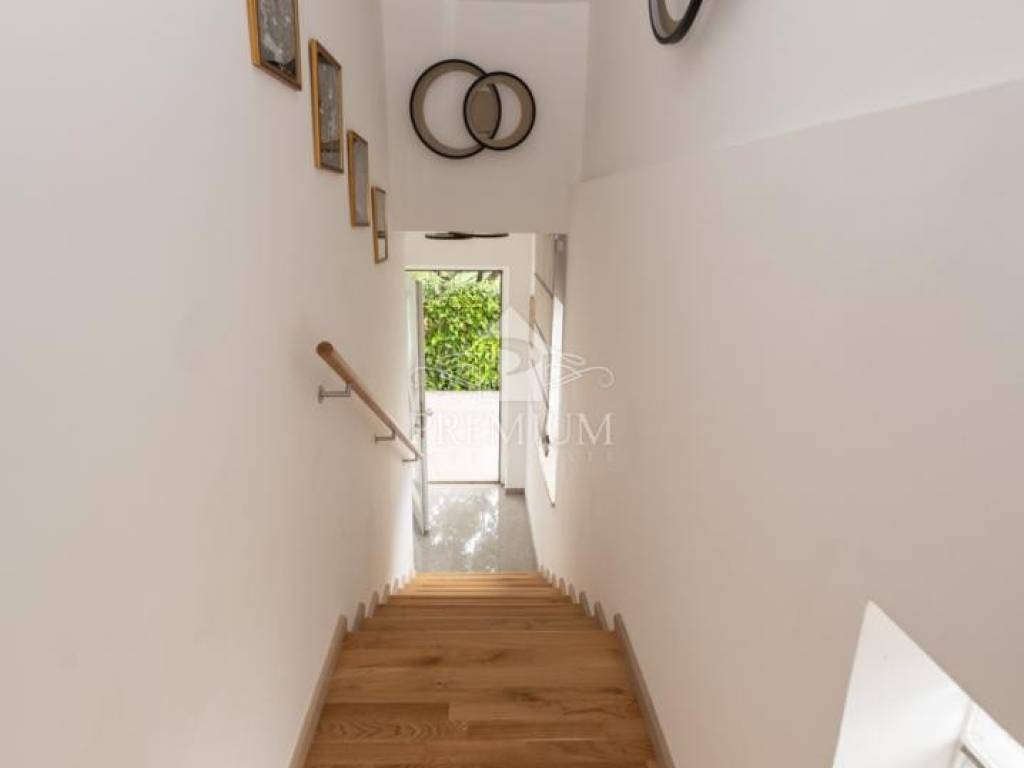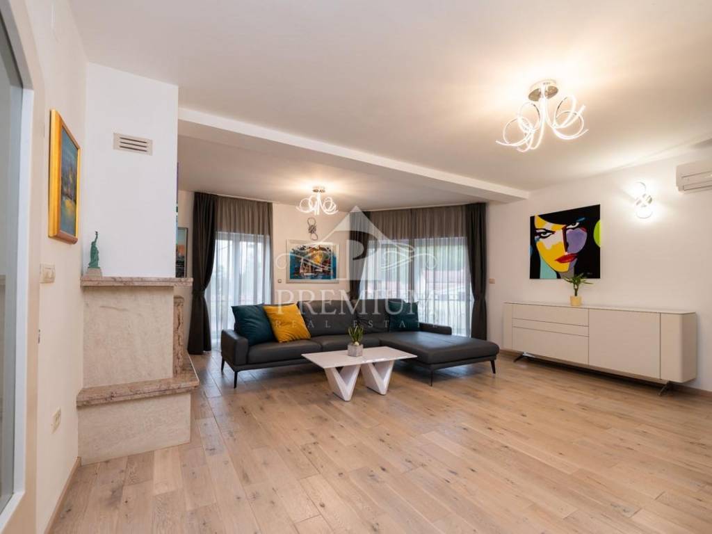 Next to the house is a beautifully decorated and fenced garden of 870 m2 with parking. The house is being sold fully furnished and decorated. It was completely renovated in 2022 and great attention was paid to the decoration and details (fireplace, lighting fixtures, materials and color palette, selection of high-quality materials (parquet, tiles, furniture, appliances). As it is located in a quiet location, it is ideal for family life, but the house is also suitable for investment or tourist rental.