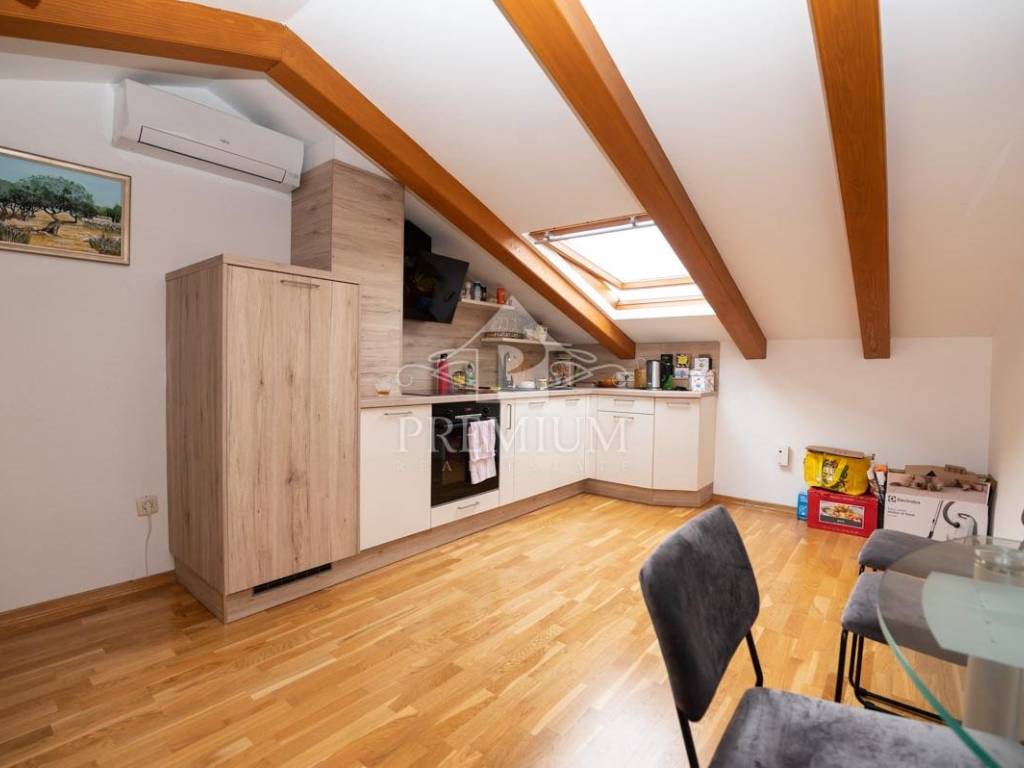 On the second floor there is an 80 m2 attic apartment consisting of a living room, kitchen with dining area, two bedrooms with en-suite bathrooms, and one separate bathroom and two terraces. Access to the apartment is via an external staircase.