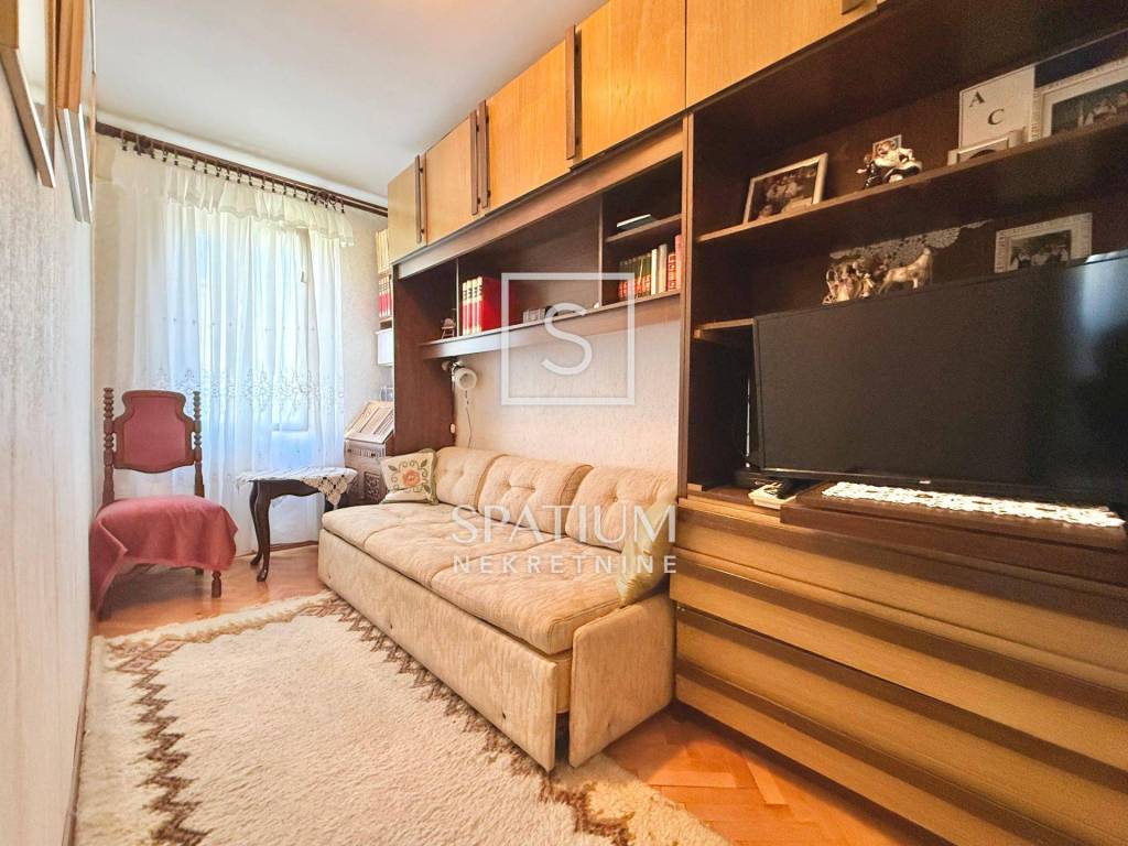 The apartment consists of an entrance hall, two spacious bedrooms, a living room and a bathroom. The living area opens onto a sunny western balcony. The majority of the renovation was carried out in 2009, when the complete water and electricity installations and floor coverings were replaced. Thanks to the western orientation, the apartment is illuminated by natural light during the second part of the day.