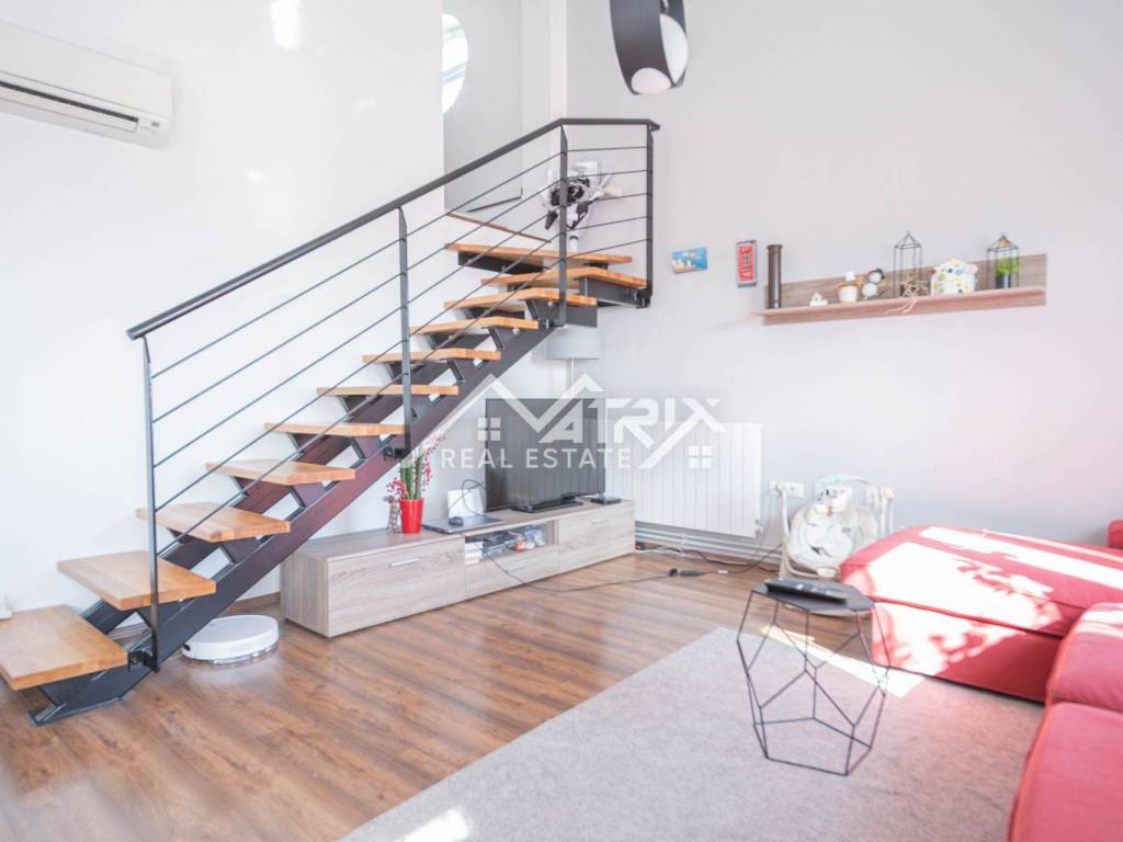 The apartment consists of two bedrooms, a spacious living room with a dining area, a kitchen, a bathroom, and a storage room. A significant advantage is the newly built 35 m² gallery, currently used as a workspace, children's play area, and storage space. There is also the possibility of adding another bathroom – although the installations have not yet been prepared, they can be connected to the existing system in the downstairs bathroom.