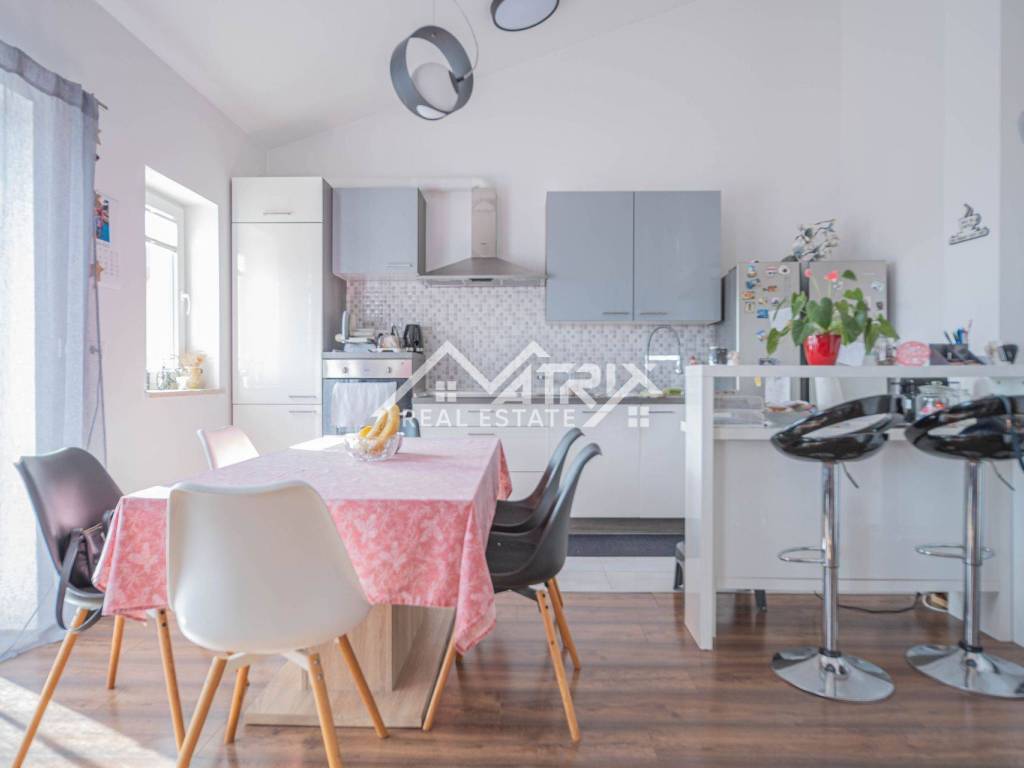 This bright and spacious apartment is located in a quiet part of Ližnjan, just a 10-minute walk from the sea, making it ideal for those who appreciate peace and proximity to the beach. The apartment covers 100 m², plus an additional 2 m² terrace with an open view of the sea and surrounding islands.