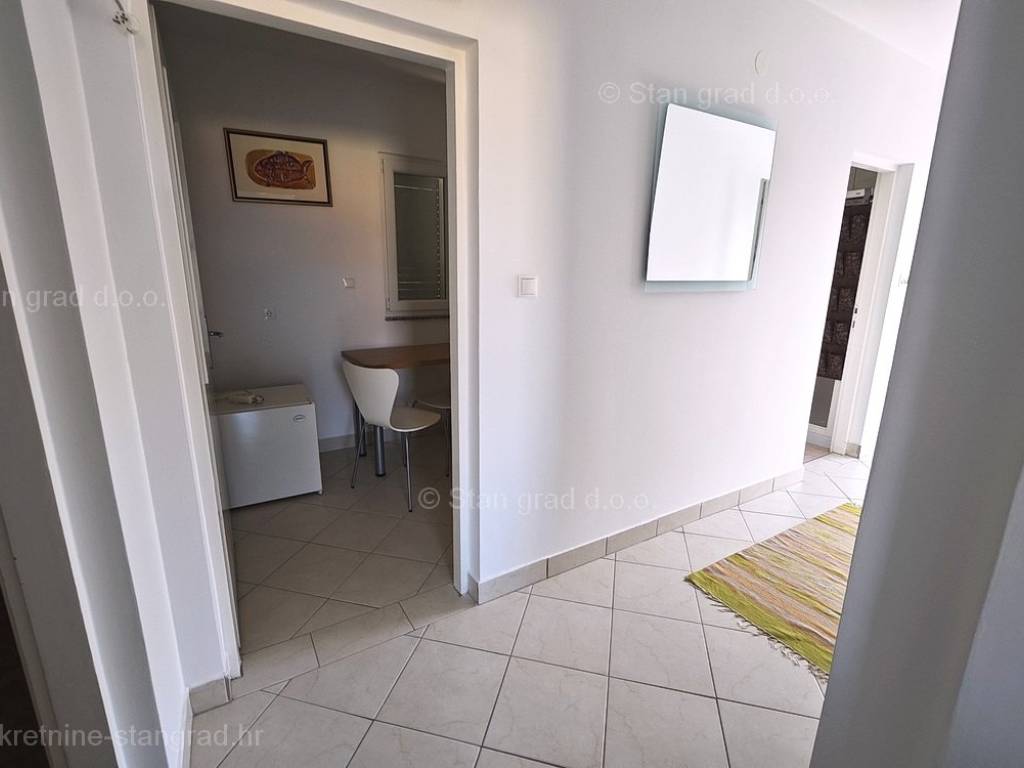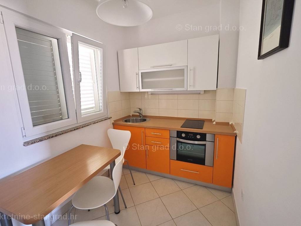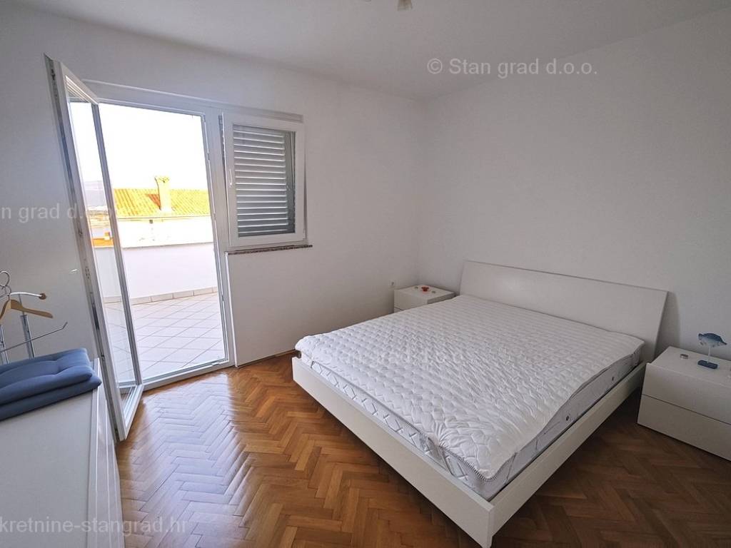 For sale by the agency Stan Grad Immobilien on the Adriatic coastal area of the island of Krk, there is an apartment of very good quality and in a general state of preservation. This apartment is located in an exceptional location, in the center of Šilo and within walking distance of the sea and all local events. According to the property type, this is a medium-sized one-story apartment. Inside the building of good quality, the apartment is located on the 1st floor, which can be reached by an external staircase. The apartment has a total area of approximately 60 m2. This area includes a living room and a kitchen with a dining room, 2 bedrooms, a bathroom and 2 terraces. The well-maintained interior of the property is fully furnished with quality furniture and all the necessary technical equipment. It can also be pointed out that the ownership of the apartment enables the unhindered use of the common part of the property's garden. Two cars can be comfortably parked in the adjoining part of the garden of the described property. In addition to the properties described earlier, the property is very well oriented and offers a tempting view of the sea and the natural landscape from the apartment. The apartment in question is owned by a physical obligation and upon transfer of ownership is subject to the calculation of real estate sales tax in the amount of 3%. The real estate seller guarantees a quick transfer of ownership rights and proper ownership and technical documentation. Our team is waiting for you at the prominent address of the company's Kvarner office on the island of Krk. In addition to the presentation of the real estate and its legal status and conducting negotiations with the seller of the real estate, our expert team will assist the buyer in transferring ownership of the apartment and transferring bills for electricity, water supply and utility services to his name.