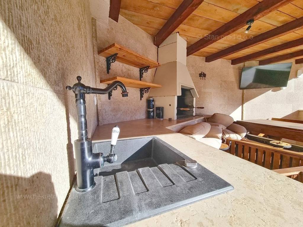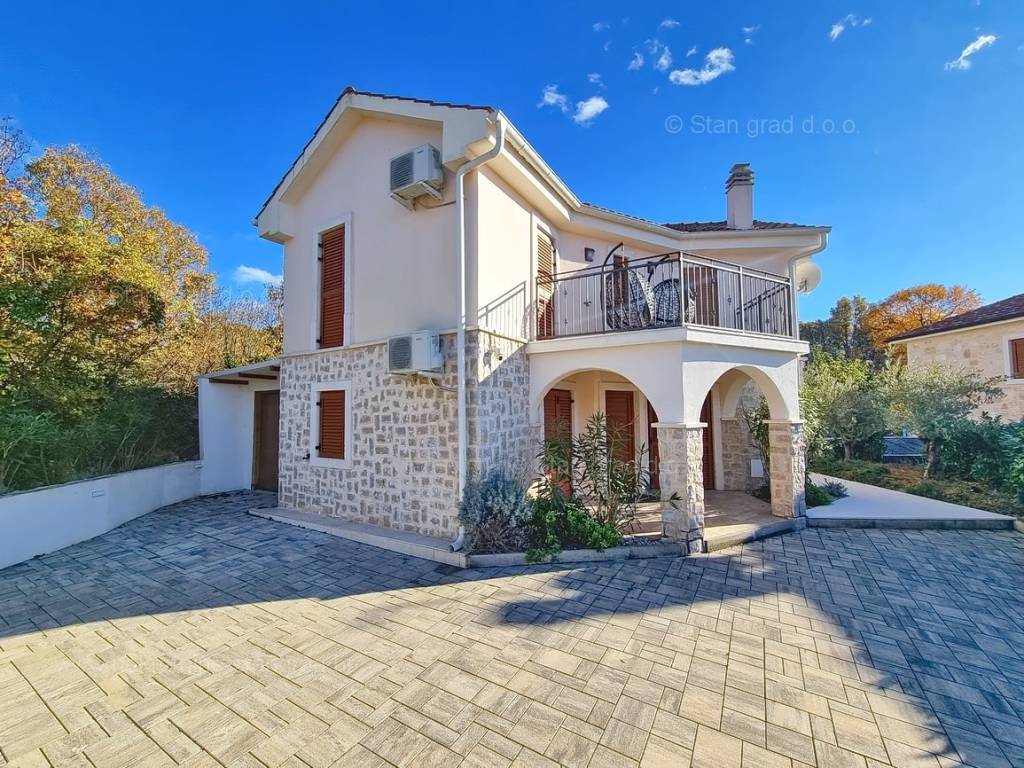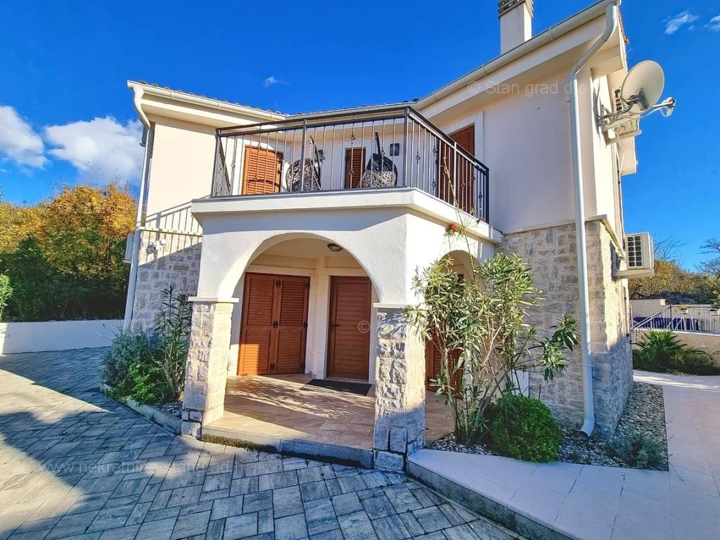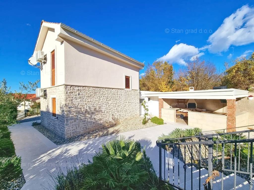 From the real estate offer of the Stan Grad Immobilien agency in the advanced Kvarner area, a romantic tourist house in an attractive tourist destination and the pearl of the Adriatic, the island of Krk, has been singled out. This house is positioned in a quiet location in the coastal town of Malinska, not too far from the sea. Structurally speaking, this is a single-story house. The extremely attractive building consists of a total of 2 floors. The property is functionally designed for the residence of one family. The house has a total area of 130 m2. This area contains a living room, a kitchen with a dining room and a bathroom on the ground floor, and on the first floor two bedrooms with balconies and two bathrooms. The interior of the property is particularly well maintained and fully equipped with the necessary technical devices and high-quality furniture. The special charm of this property is given by the exceptionally landscaped garden, which includes a heated saltwater pool, a sunbathing area, a covered terrace, a summer kitchen, an outdoor toilet and a shower. Two cars can be comfortably parked in the garden of the described property. In addition to the above, it should be emphasized that the house has a beautiful view of the sea. This property is subject to VAT. The seller guarantees proper ownership documents and the possibility of quick registration of ownership of the property in question to the buyer in the land register. Contact us and we will be happy to present this property to you. The Stan Grad Immobilien agency will provide all its clients with all the necessary assistance in registering ownership and taking over the real estate itself.