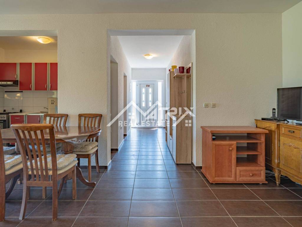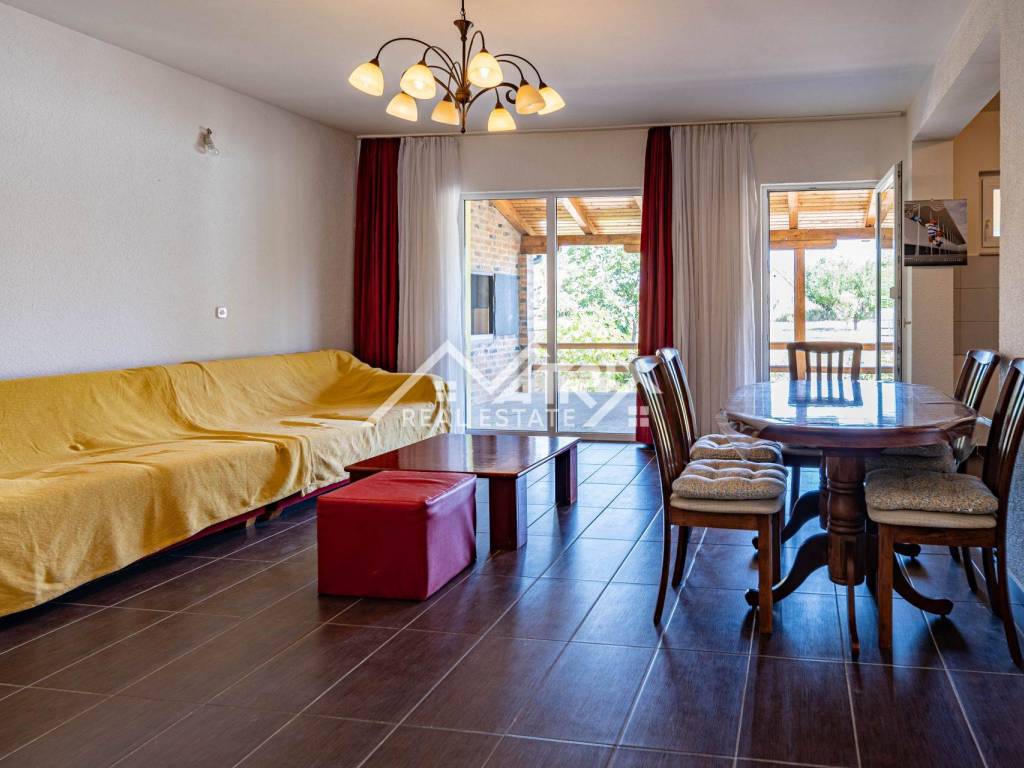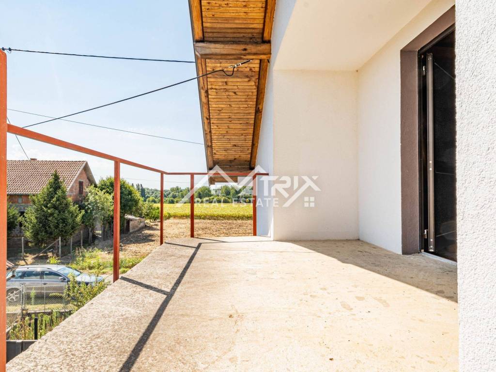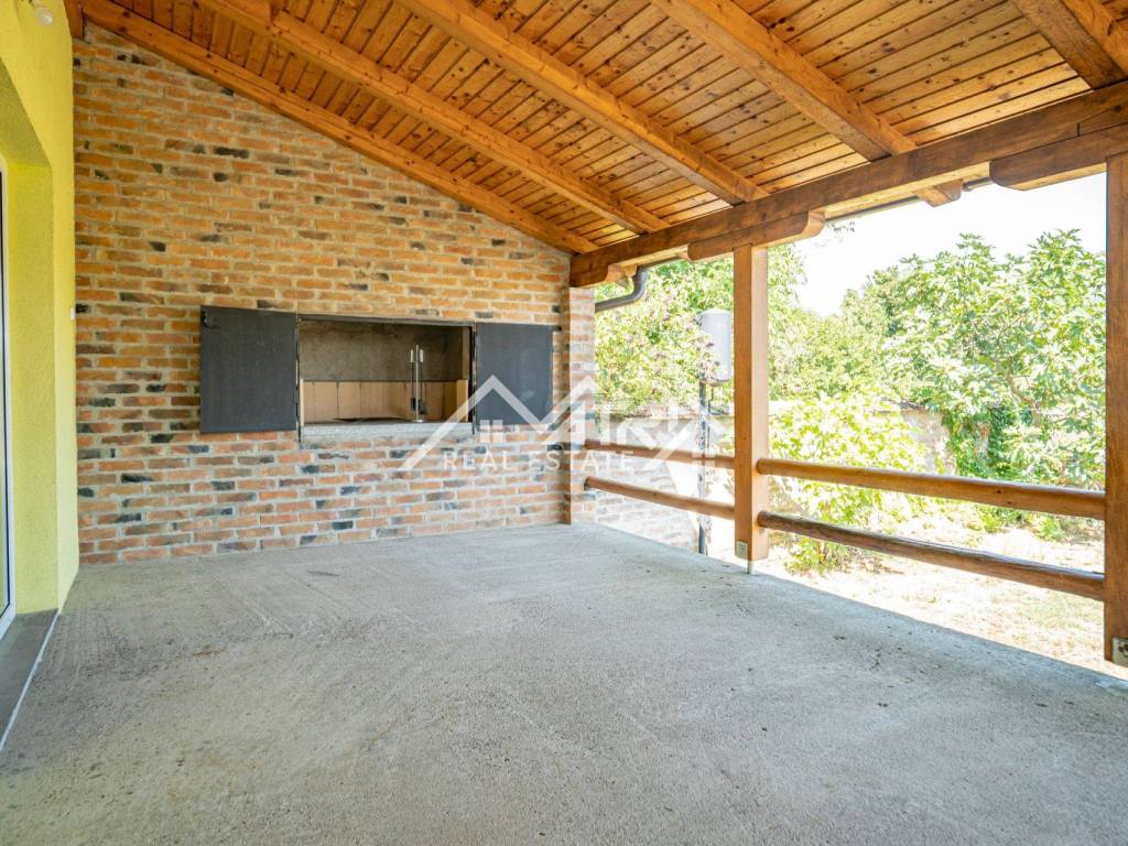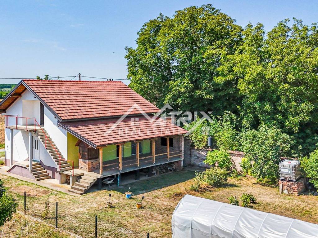 Located on a quiet street in Erdut, about 30 km from both Osijek and Vukovar and close to the Croatia-Serbia border, this raised bungalow offers roughly 120 m² of living space on an approximately 1 237 m² plot. Surrounded by vineyards, cycling routes and the Aljmaš pilgrimage site, it is ideal for rural tourism or a spacious family home. The ground floor features a hallway, large bathroom with walk-in shower, master bedroom, smaller bedroom and an open-plan kitchen-dining-living area that opens to a very spacious covered terrace with a traditional bread oven.