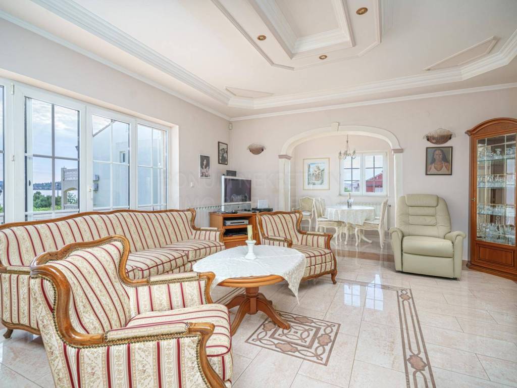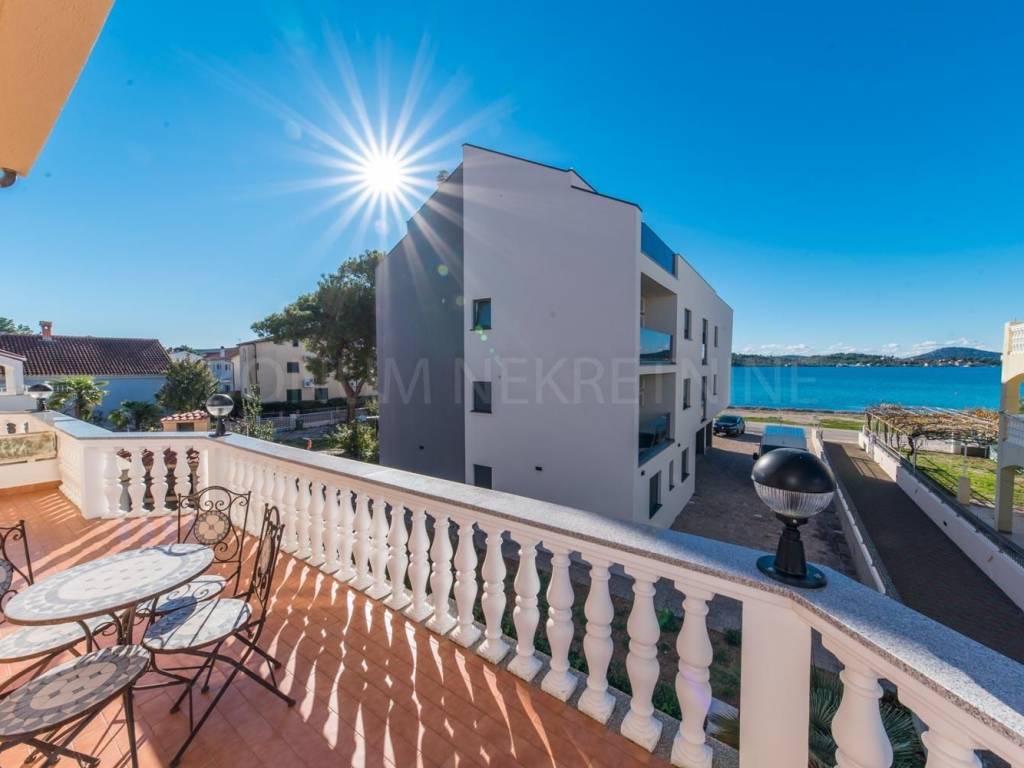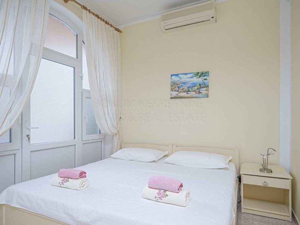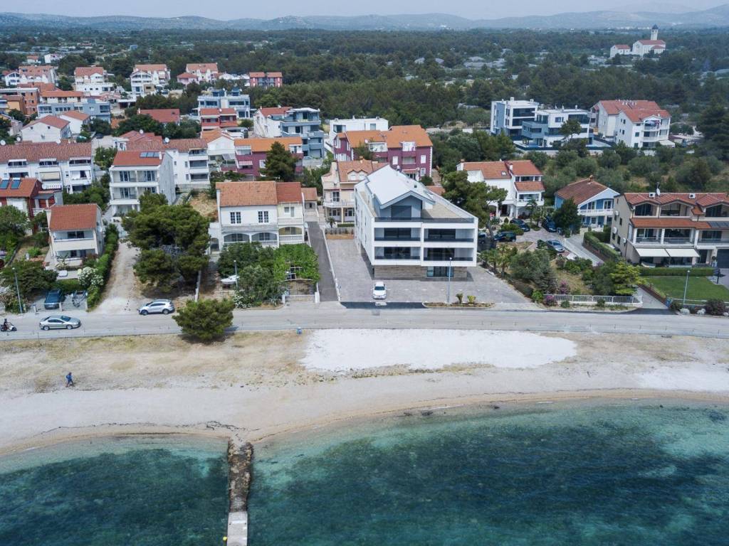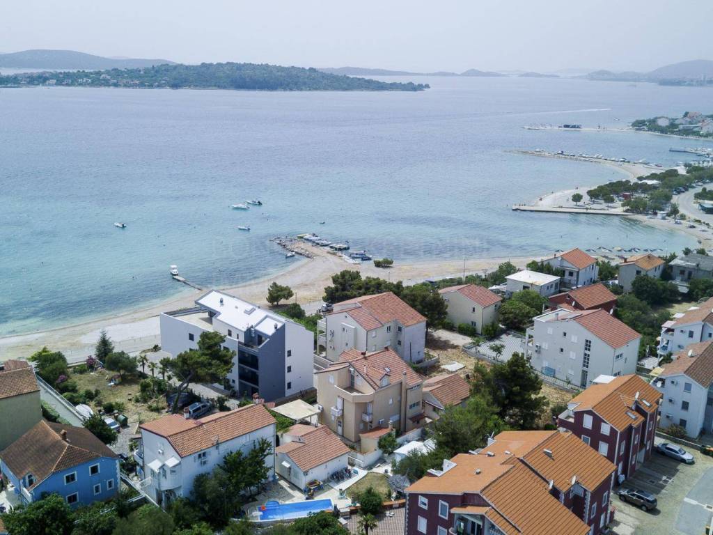 Apartment house for sale near the sea and the beautiful beach on Srima-Vodice. The house is detached, apartment type. It consists of ground floor, first floor and attic. There are three studio apartments on the ground floor. Each has 30 m2. Upstairs there is a spacious apartment of 90 m2 (three bedrooms, bathroom, toilet, kitchen, dining room and living room in one unit and three balconies). In the attic there is another apartment - 68 m2 (bedroom, kitchen, dining room, living room, bathroom, toilet and two terraces with beautiful sea views. The yard is arranged, and there is also a laundry room, garage of 35 m2 , outdoor kitchen and behind the house is a storage room in which the boiler room is located.The house is located in the second row to the sea, only 50 m from the beautiful and well-maintained beach.