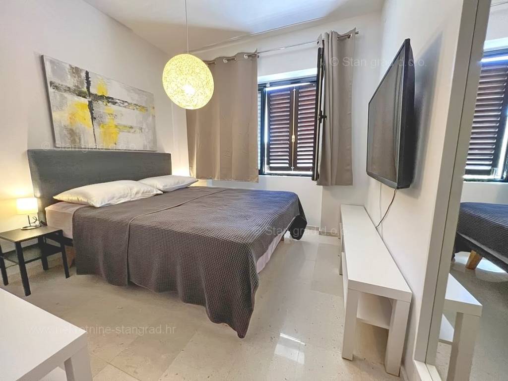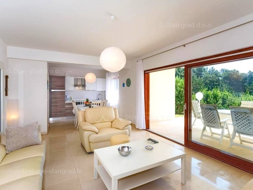 The Stan Grad Immobilien agency is selling an exceptional apartment built according to a modern project in the attractive northern Adriatic area of the island of Krk. This property is located in a top location, integrated into the area of the city center of Krk and in the immediate vicinity of the sea, beach and other tourist attractions. According to the type, this is a spacious one-story apartment that extends over the entire floor of the building. In a first-class building, the apartment is positioned on the 1st floor. The area of this apartment is 100 m2 in total. The specified area includes an entrance hall, living room and kitchen with dining room, 3 bedrooms, 3 bathrooms and a spacious covered terrace. The excellently maintained interior of the property is fully furnished with quality furniture and all necessary technical equipment. Ownership of this apartment also includes the possibility of using the common part of the yard of the building in question. This apartment has a parking space for two cars. In addition to the previous features, the building is perfectly oriented, so the apartment offers a beautiful view of the sea and the coast. This apartment is owned by a natural person, so the buyer is obliged to pay 3% sales tax when transferring ownership to his/her name. The owner of the property guarantees the accuracy of the relevant ownership documents and the possibility of a quick transfer of ownership of the apartment to the buyer. Contact us in person or by phone, we will try to answer all your questions. If you place your trust in us, the Stan Grad Immobilien agency will be happy to help you transfer the ownership rights of this property and the bill for its utility connections and services to your name.