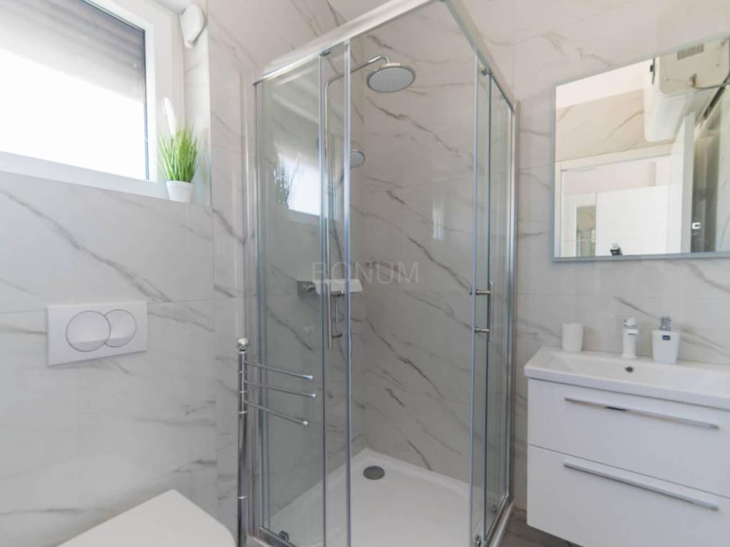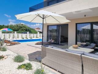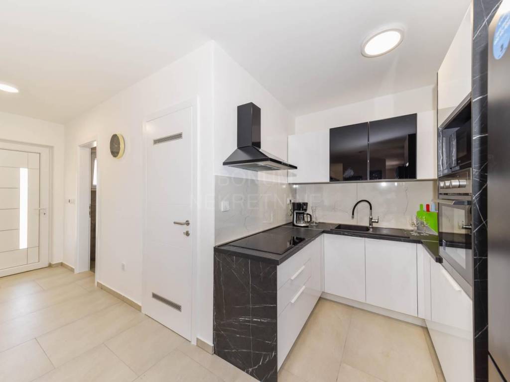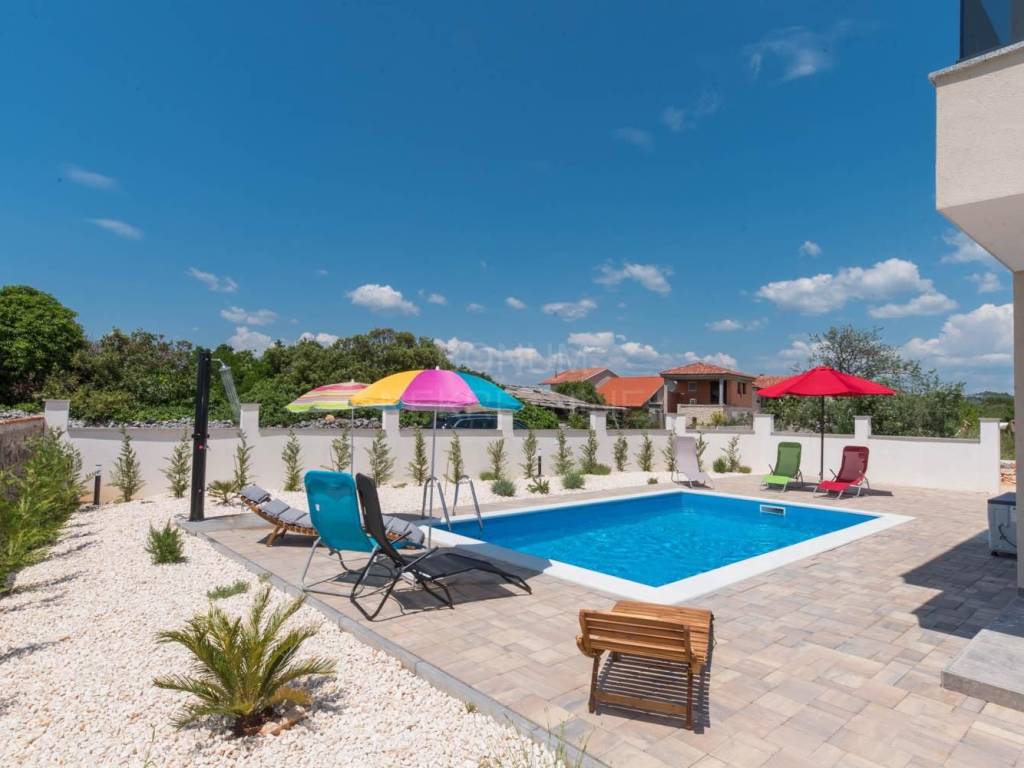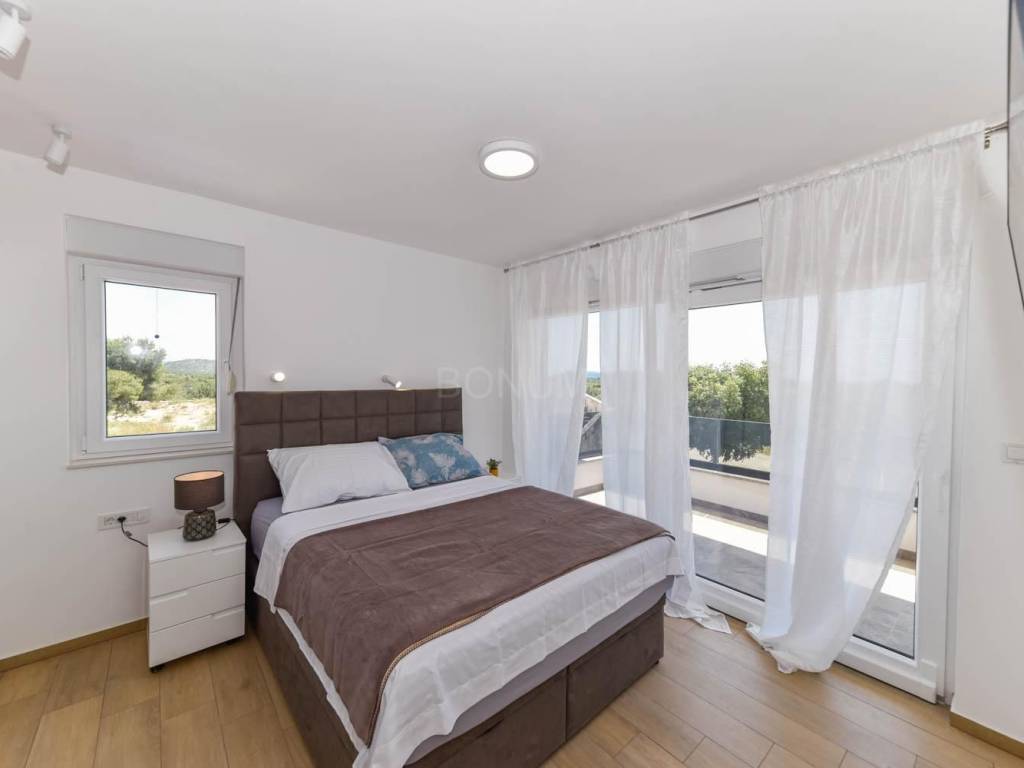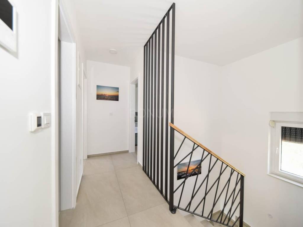 A new luxury house with a swimming pool for sale in a quiet location in Martinska near Šibenik. The house is in nature a semi-detached building and spreads over two floors: ground floor and first floor, while in the courtyard there is a beautifully landscaped garden and swimming pool. The house has an excellent layout and is designed in such a way that the yard of each house has a large garden and complete intimacy and privacy. Every detail of these houses is carefully designed and engineered so that future owners have complete luxury and comfort for vacation or living all year round.