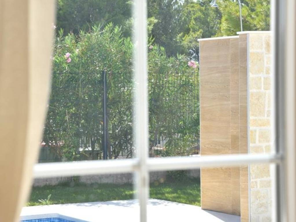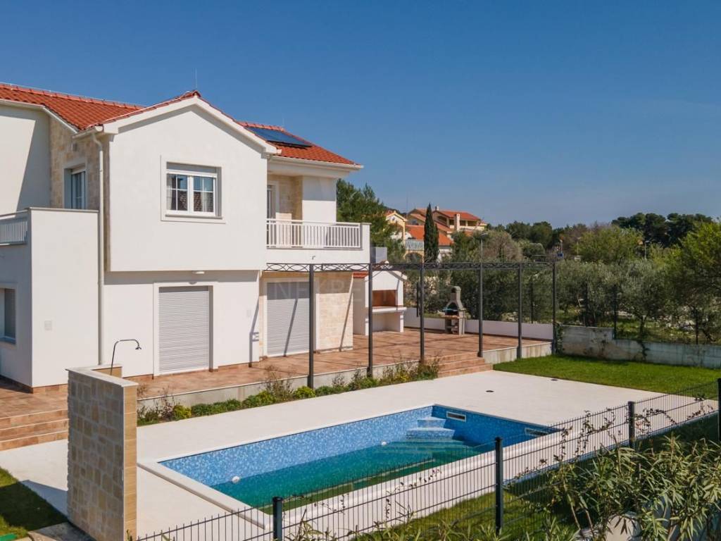 Beautiful newly built house with swimming pool for sale, Tribunj-Sovlje. The house is located on a quiet bay, near the sea. It consists of ground and first floor. U It is only 200 m away from the sea and the newly renovated beach. It consists of ground and first floor. On the ground floor there is a kitchen with a dining room and a living room in one unit, one bedroom, a bathroom and a toilet and a storage room that has an entrance from the outside. From the living room there is an exit to the terrace, in front of which there is a sunbathing area with a swimming pool and a beautifully landscaped garden. The internal staircase leads to the first floor of the house, where there are two more spacious bedrooms, two bathrooms and three terraces. The house is owned by the company. Excellent investment property.