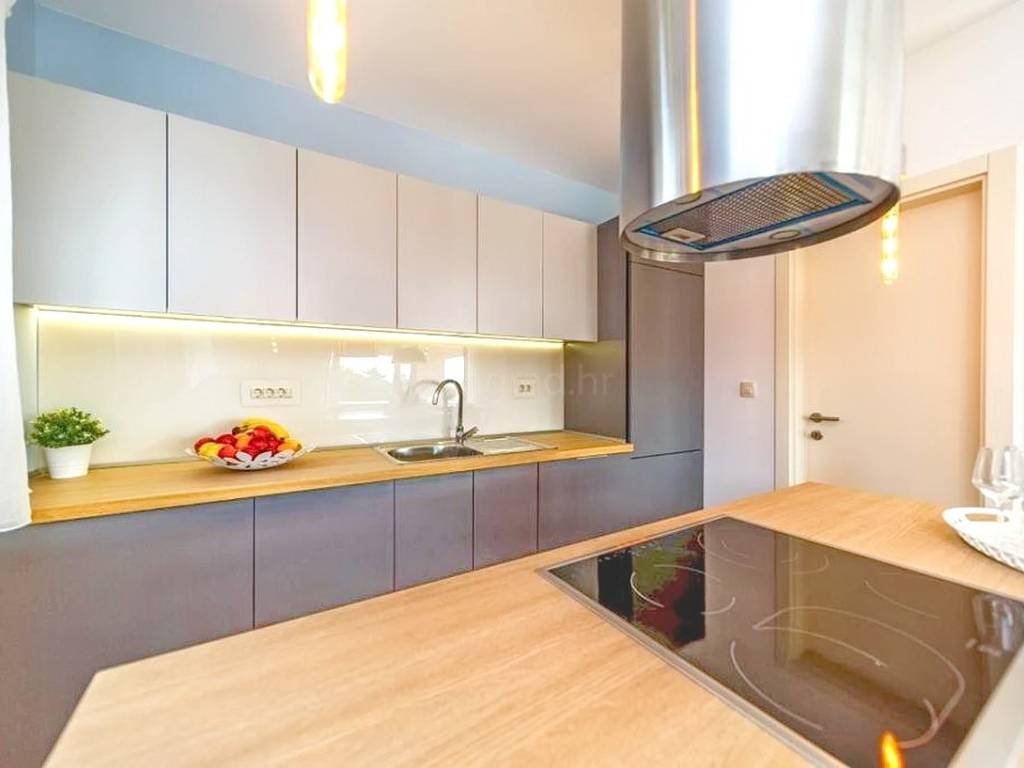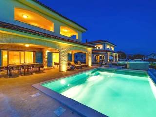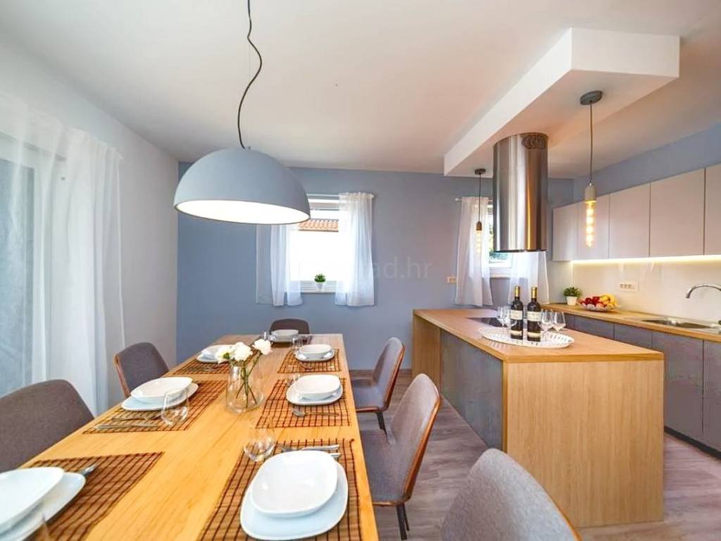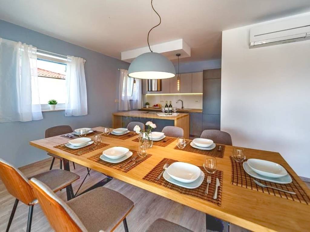 As part of the attractive Kvarner real estate offer by the agency Stan Grad Immobilien, a luxurious, designer-designed and modernly built tourist house is for sale in the Mediterranean setting of the northern Adriatic, on the island of Krk. This exceptional property is located in a highly sought-after area near the very center of Malinska, one of the island’s most popular tourist destinations. It is a detached, multi-level house spread over three floors, offering a high level of comfort and privacy.