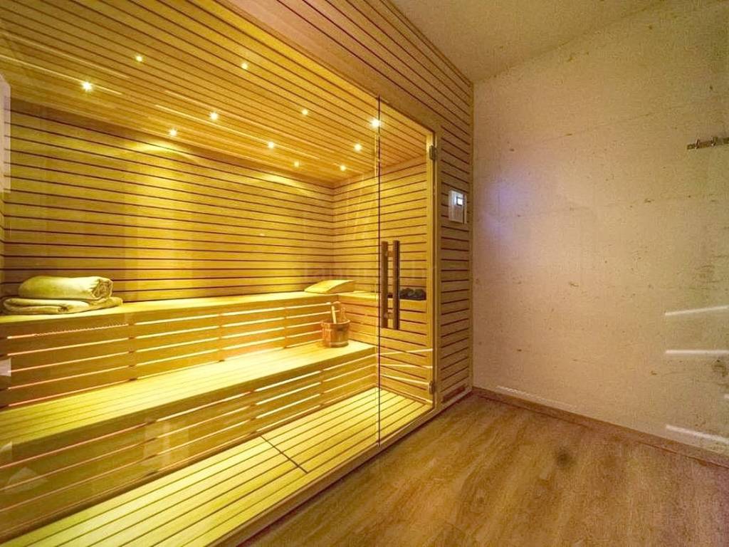 The total living area of the house is 263 square meters. The basement includes a fully equipped kitchen with a dining area, a lounge room, a guest toilet, and a sauna, providing an ideal space for relaxation and entertainment. The ground floor consists of an entrance hall, a spacious living room, a modern kitchen with a dining area that opens onto a covered terrace, and one bedroom with its own en-suite bathroom. On the upper floor, there are three elegantly furnished bedrooms, each with its own bathroom and access to a balcony offering an open sea view. The entire interior is furnished with top-quality furniture and equipped with modern technical amenities, meeting the highest standards of comfort and style.