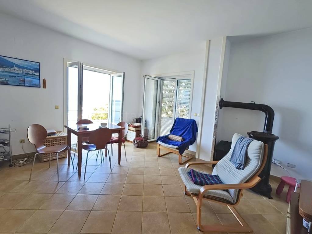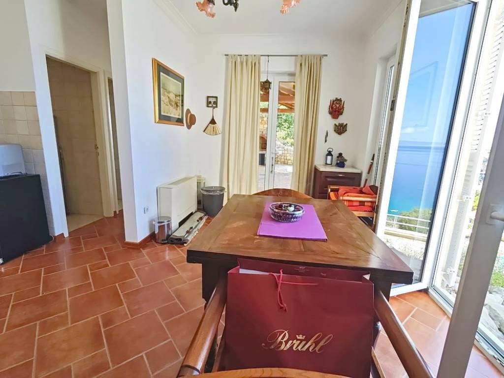 The property also includes a spacious, well-kept yard featuring a heated swimming pool, sunbathing area, and parking space for several vehicles. The entire plot is enclosed by a stone wall, and the villa offers a stunning panoramic sea view, making this location even more special.